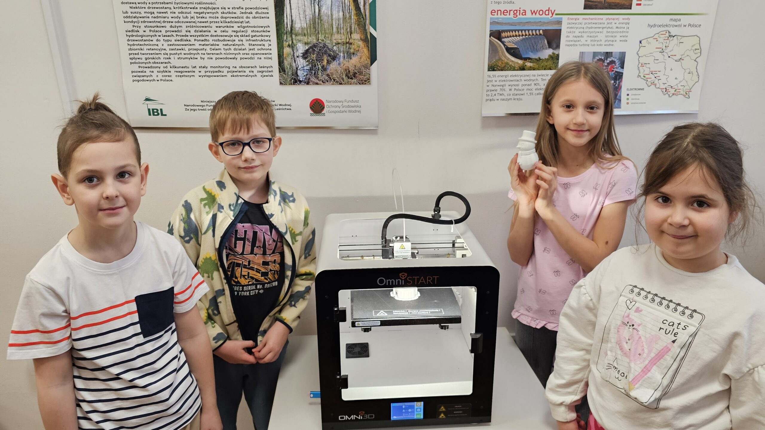 Uczniowie klas 1-3 wydrukowali bałwanki na drukarce 3D.