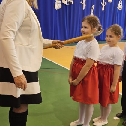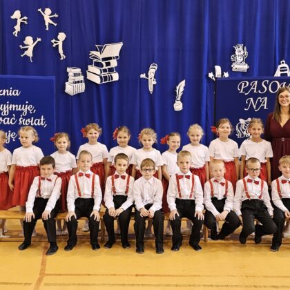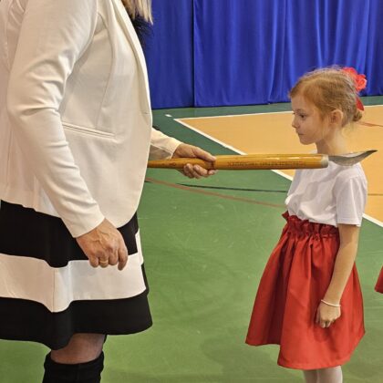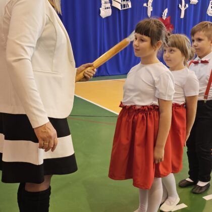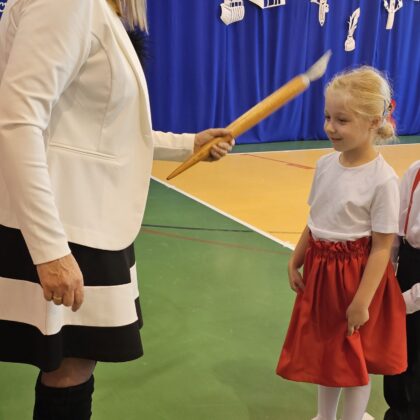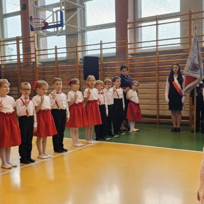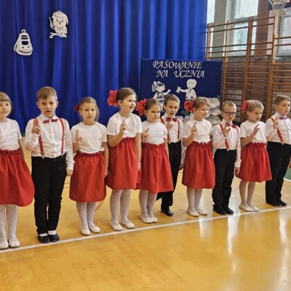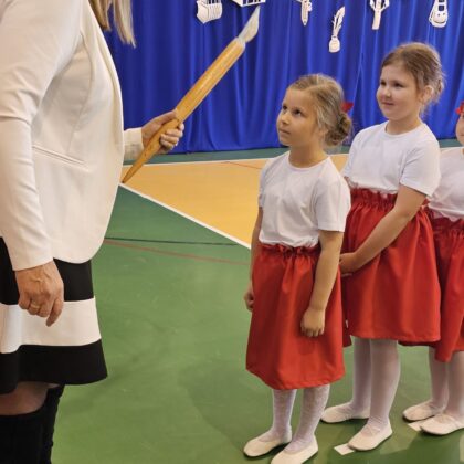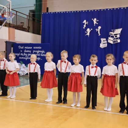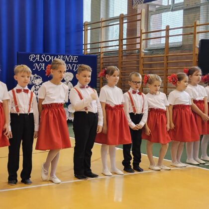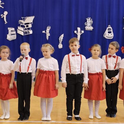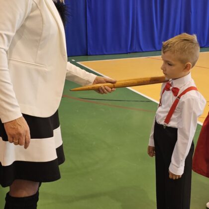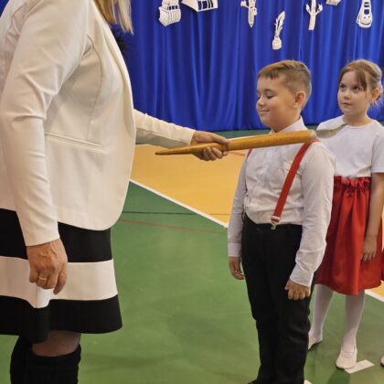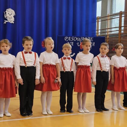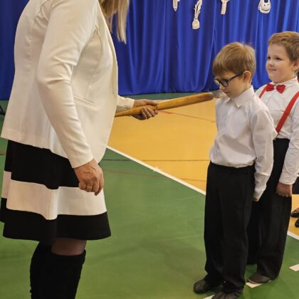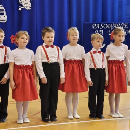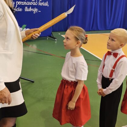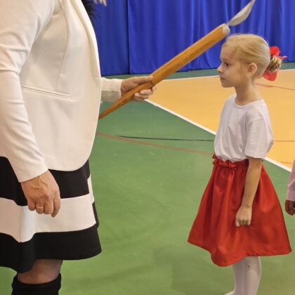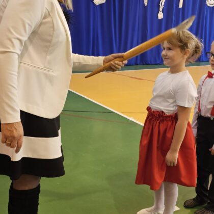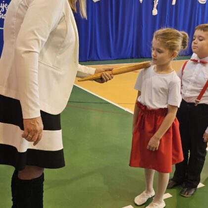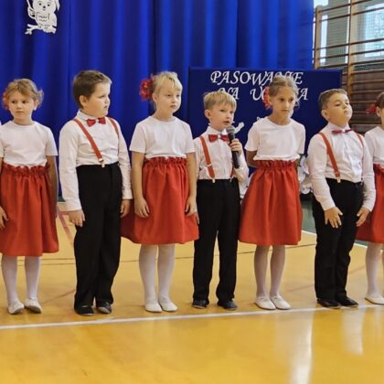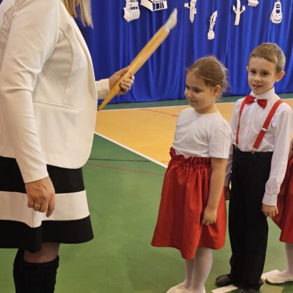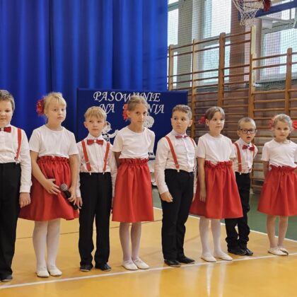 Tego dnia miało miejsce także wielkie wydarzenie – Ślubowanie klas pierwszych i pasowanie na uczniów. Pierwszoklasiści z dumą zaprezentowali swój program artystyczny, zaśpiewali, zatańczyli i z ogromnym przejęciem wypowiedzieli słowa ślubowania.