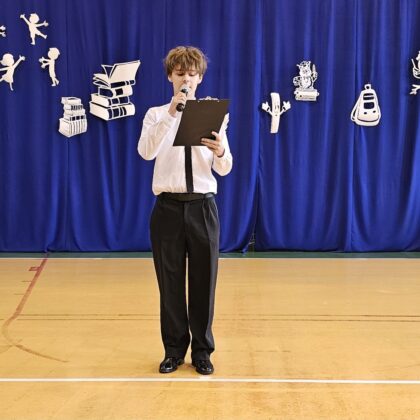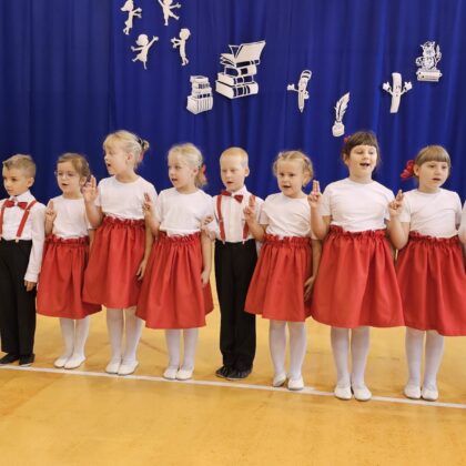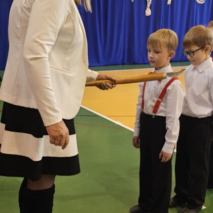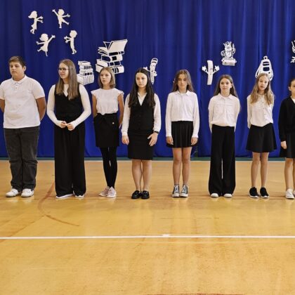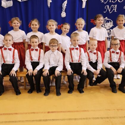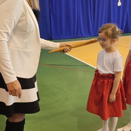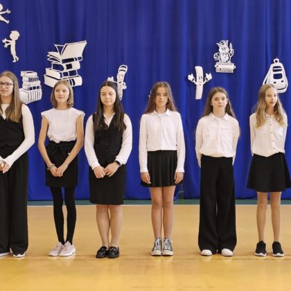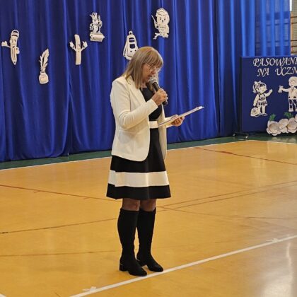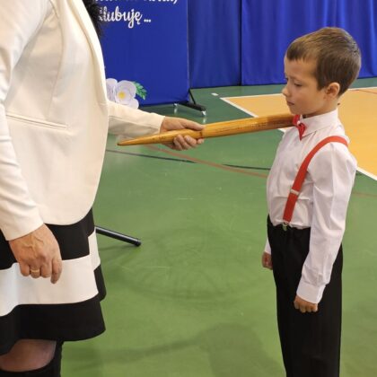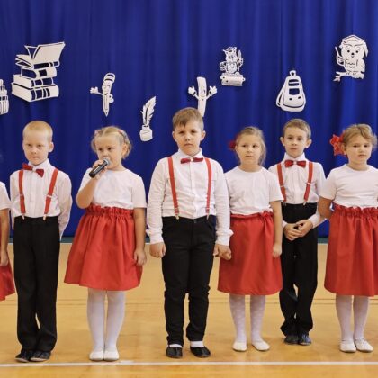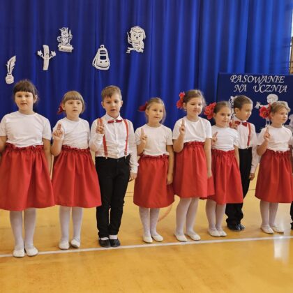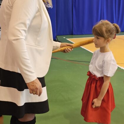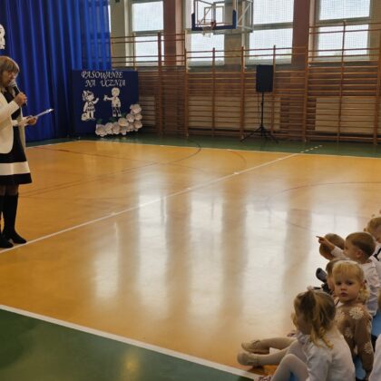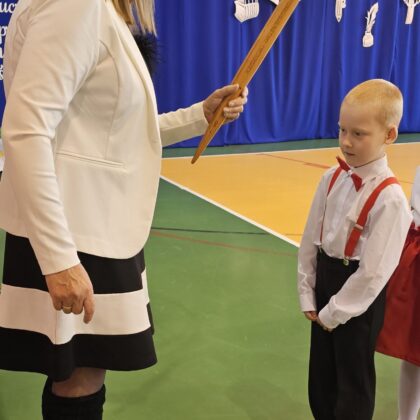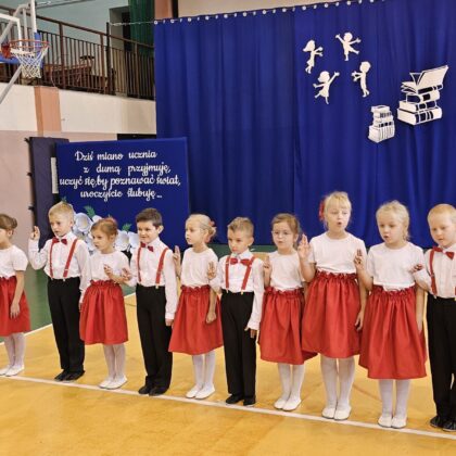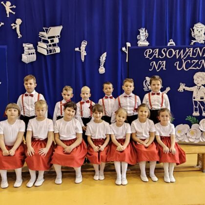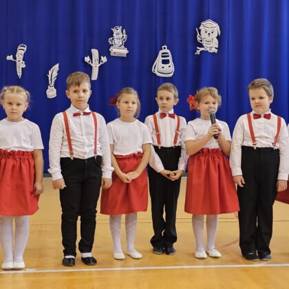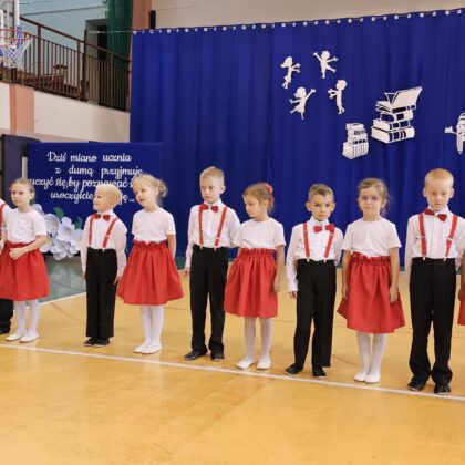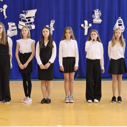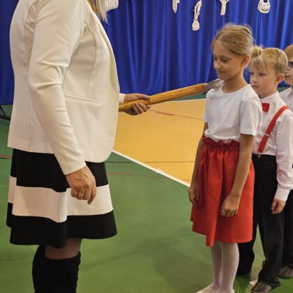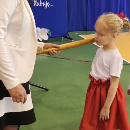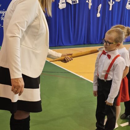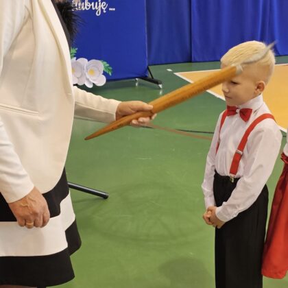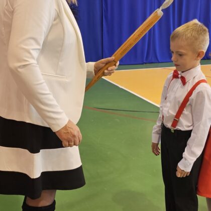 Tego dnia miało miejsce także wielkie wydarzenie – Ślubowanie klas pierwszych i pasowanie na uczniów. Pierwszoklasiści z dumą zaprezentowali swój program artystyczny, zaśpiewali, zatańczyli i z ogromnym przejęciem wypowiedzieli słowa ślubowania.