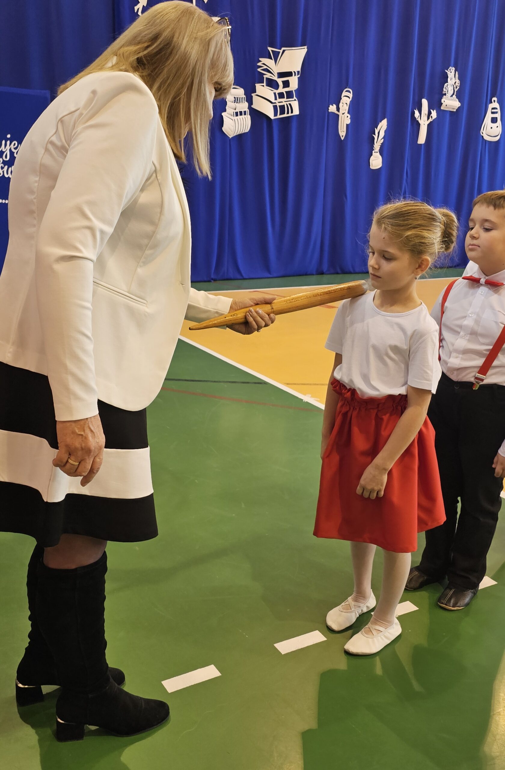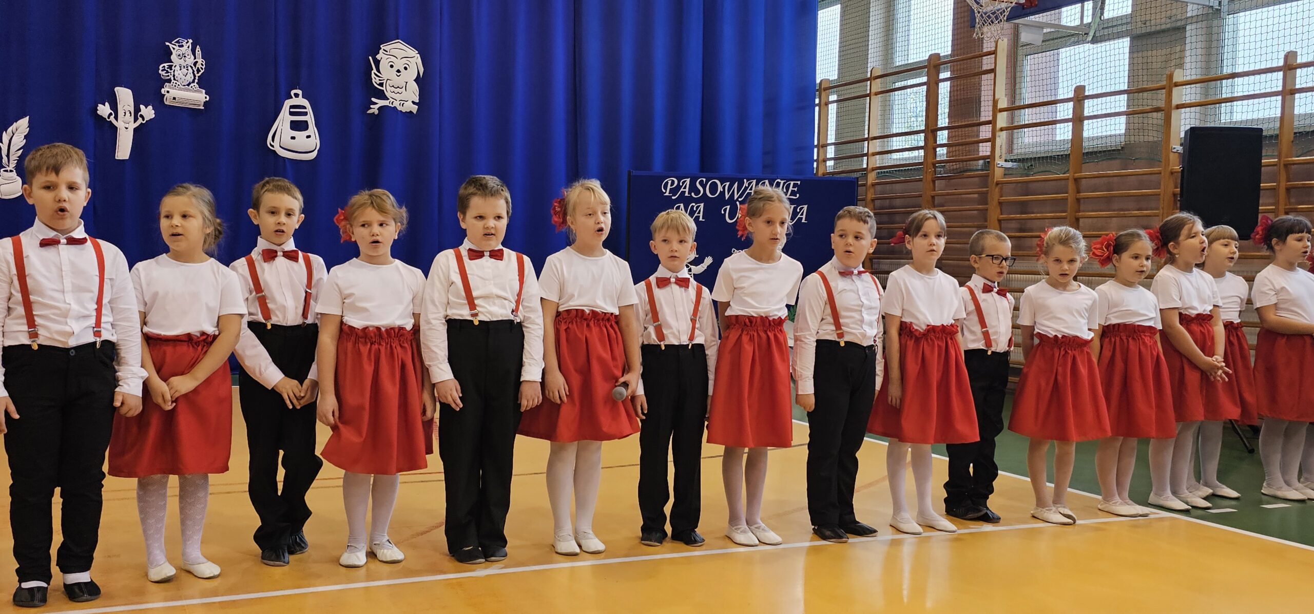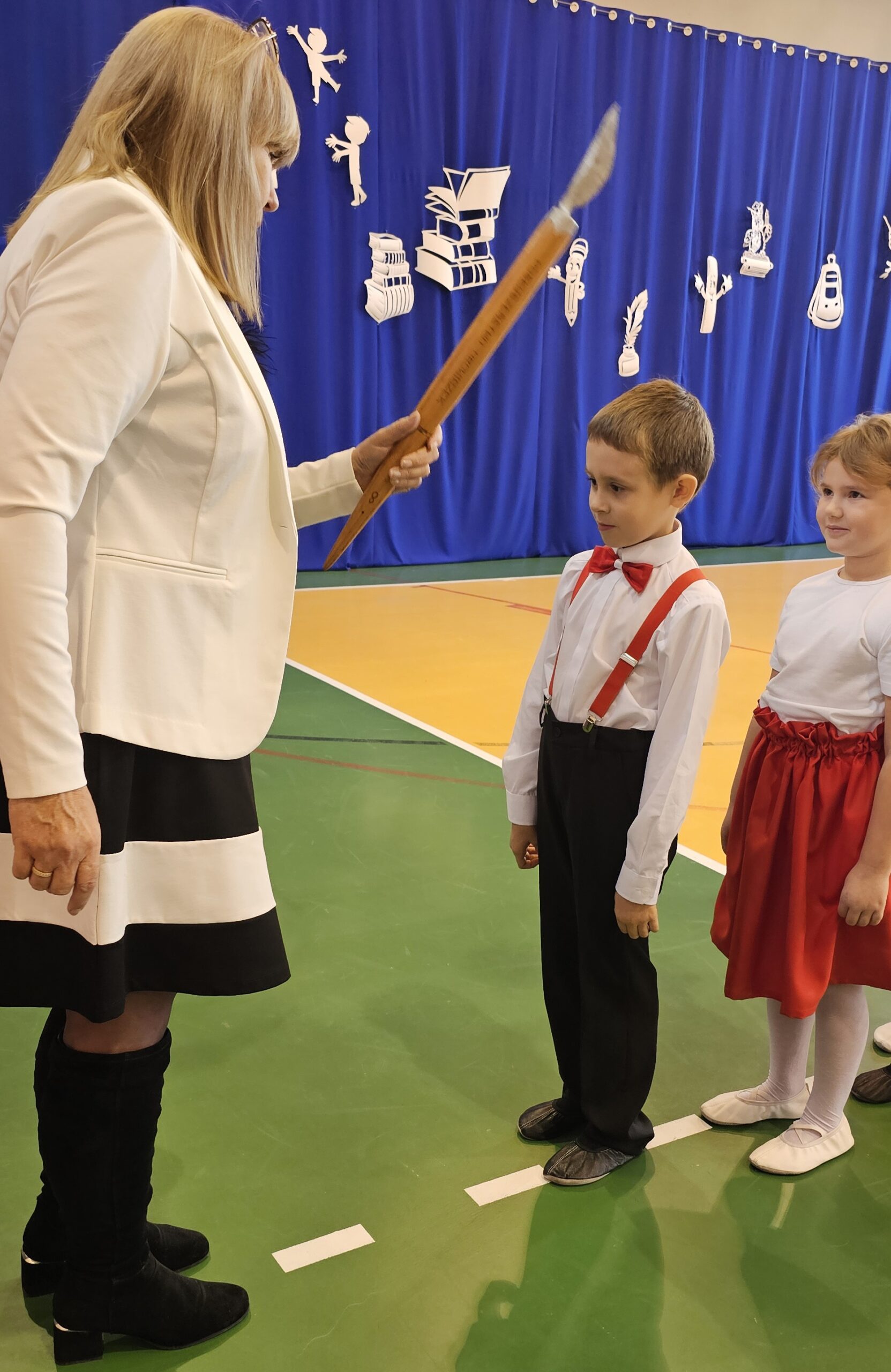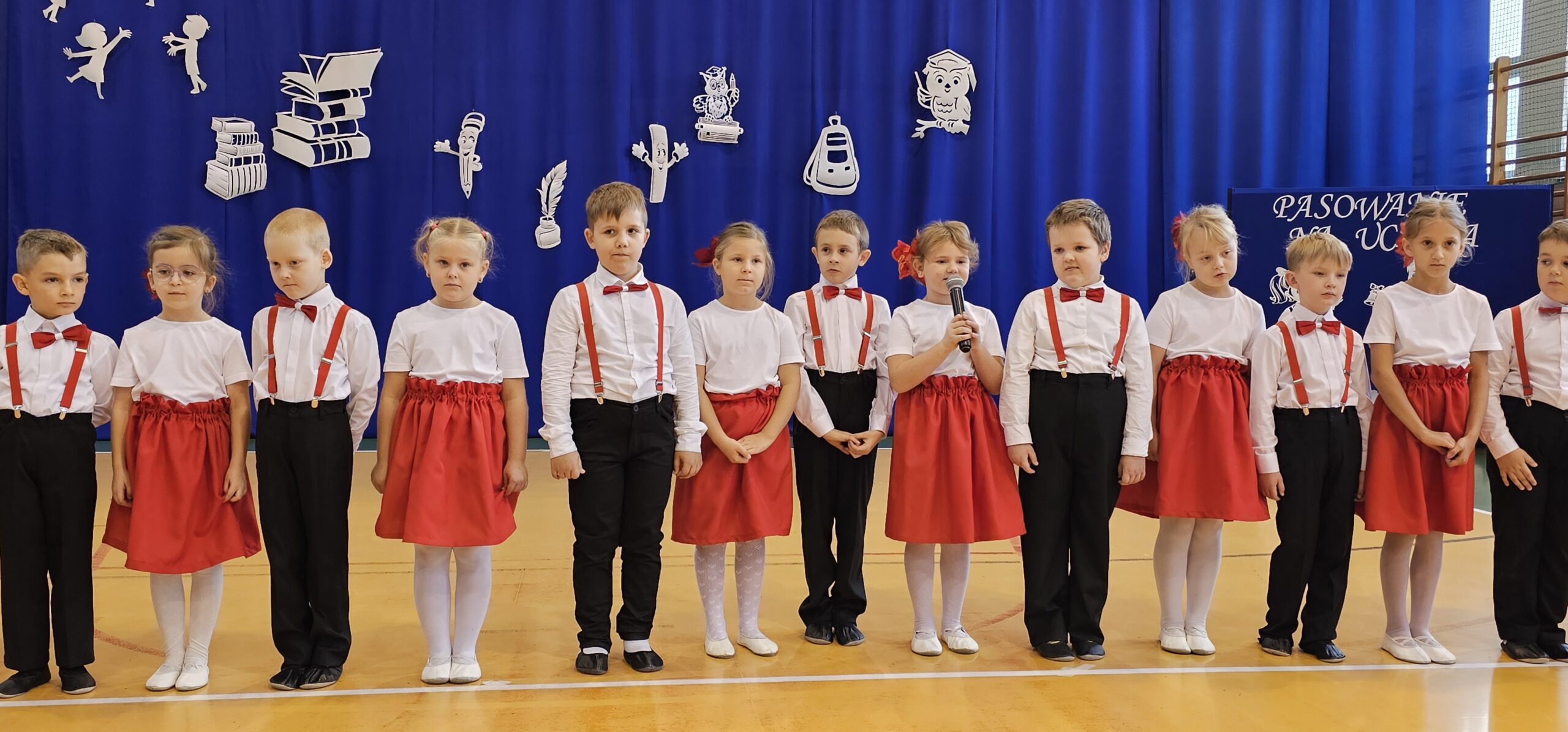 Tego dnia miało miejsce także wielkie wydarzenie – Ślubowanie klas pierwszych i pasowanie na uczniów. Pierwszoklasiści z dumą zaprezentowali swój program artystyczny, zaśpiewali, zatańczyli i z ogromnym przejęciem wypowiedzieli słowa ślubowania.