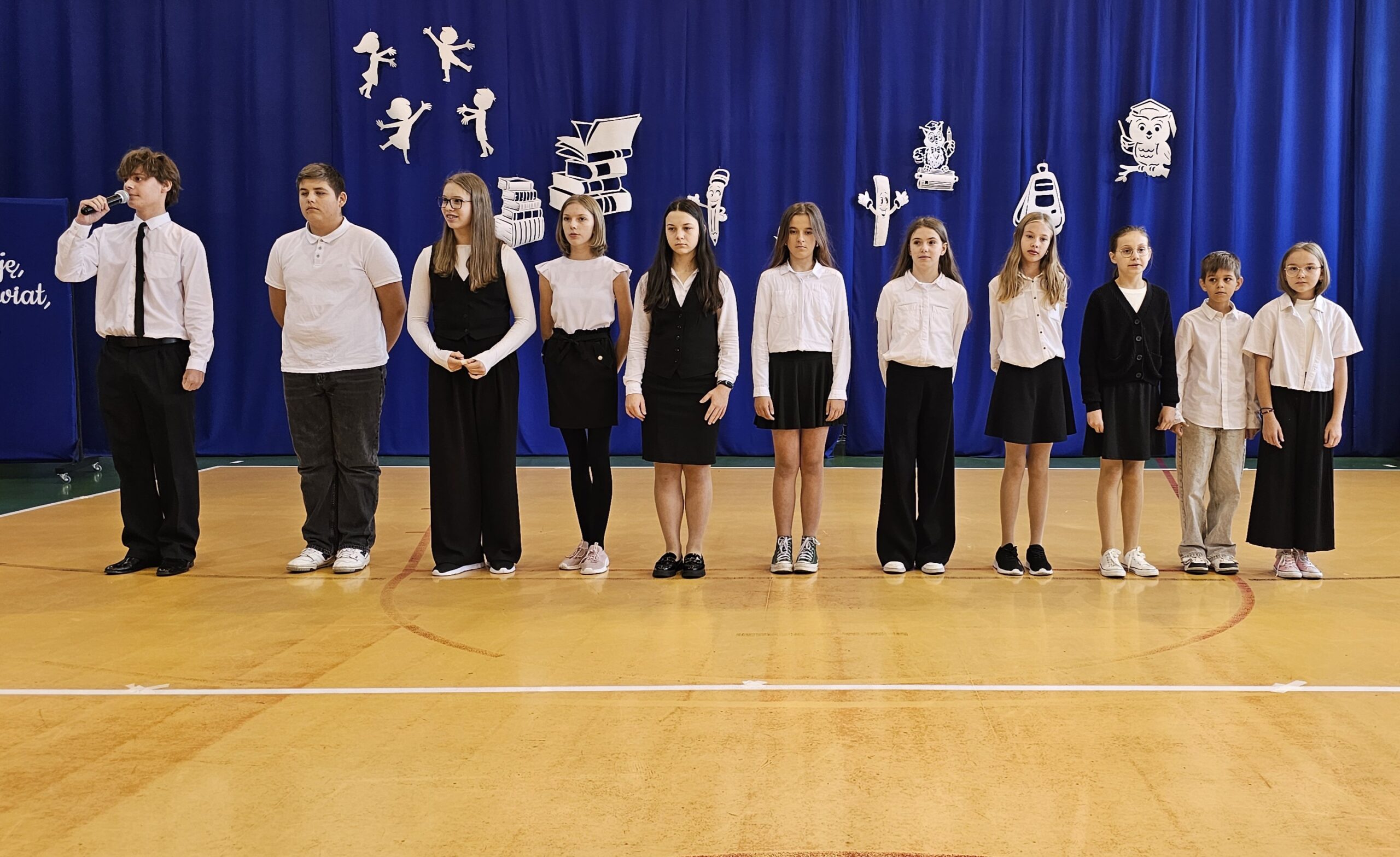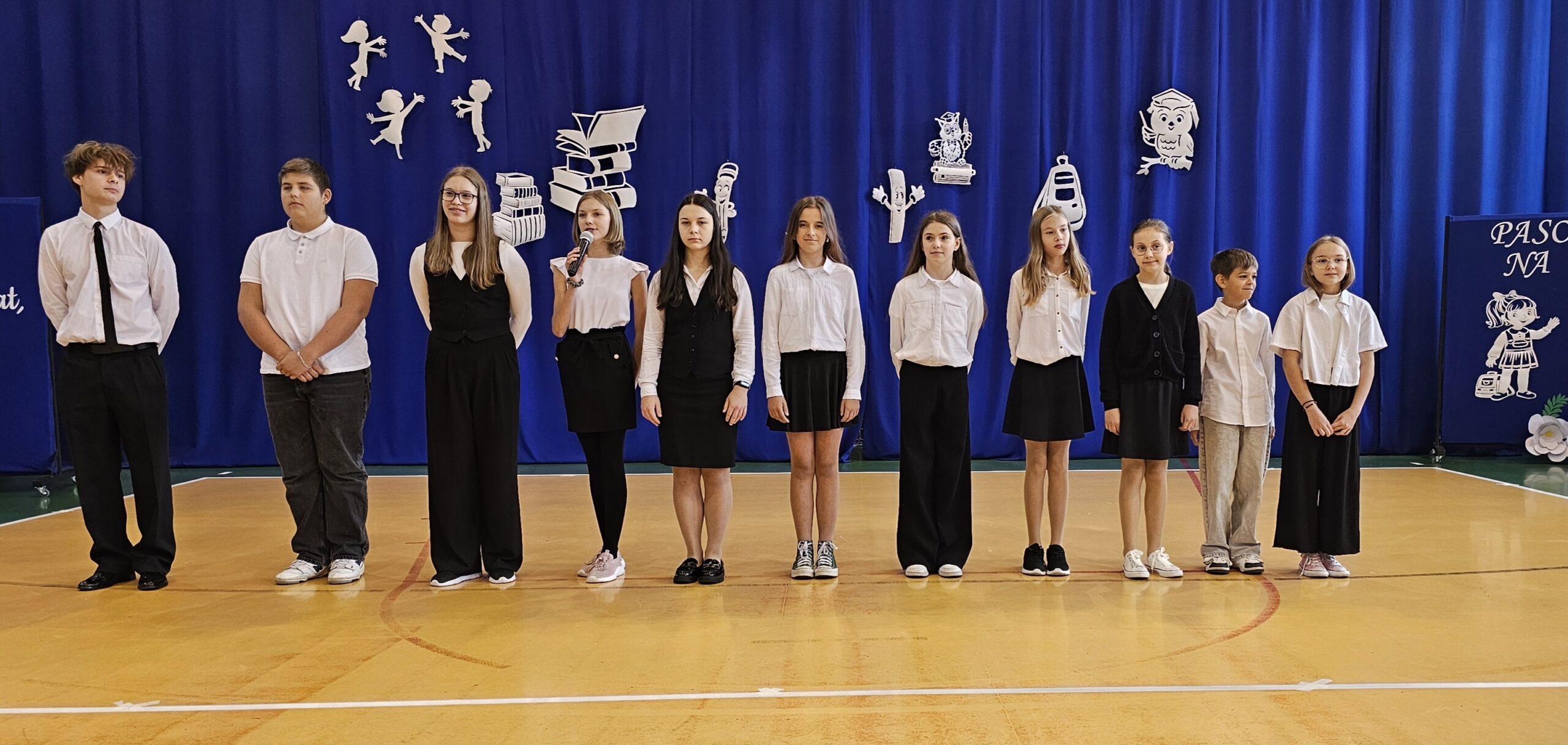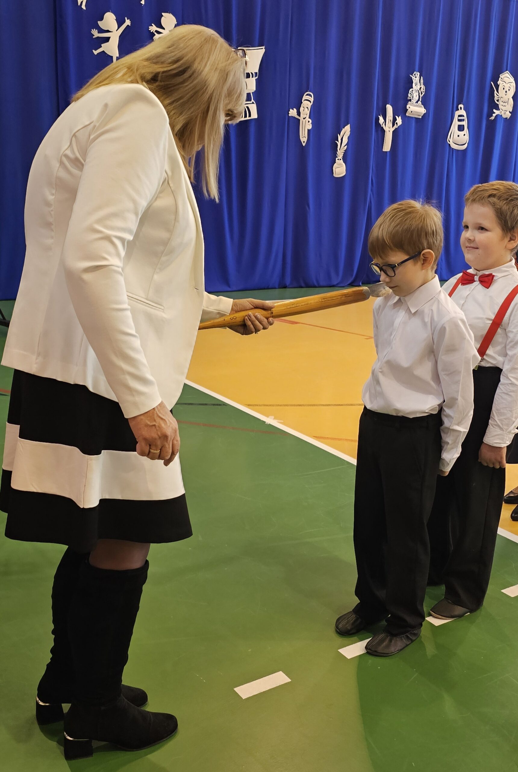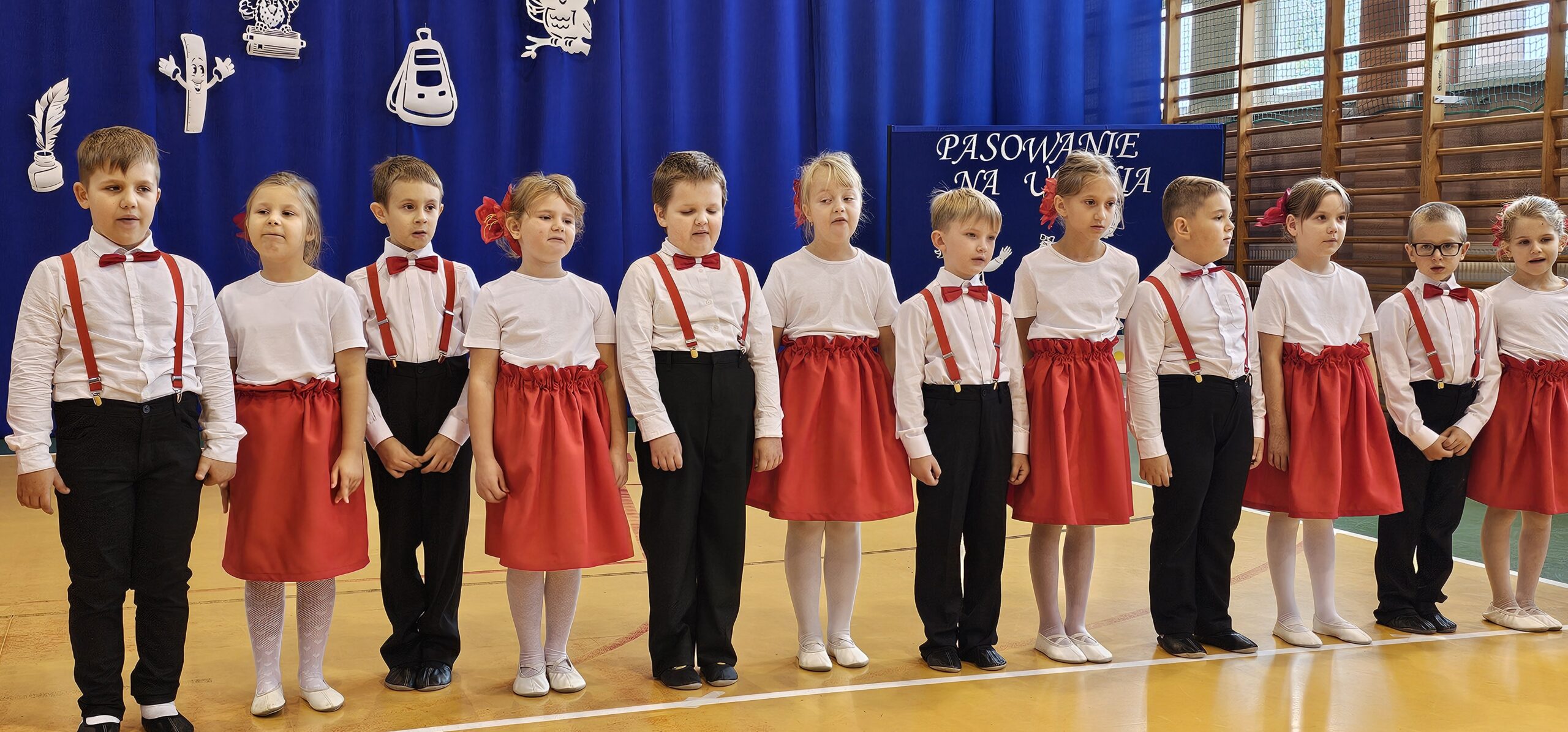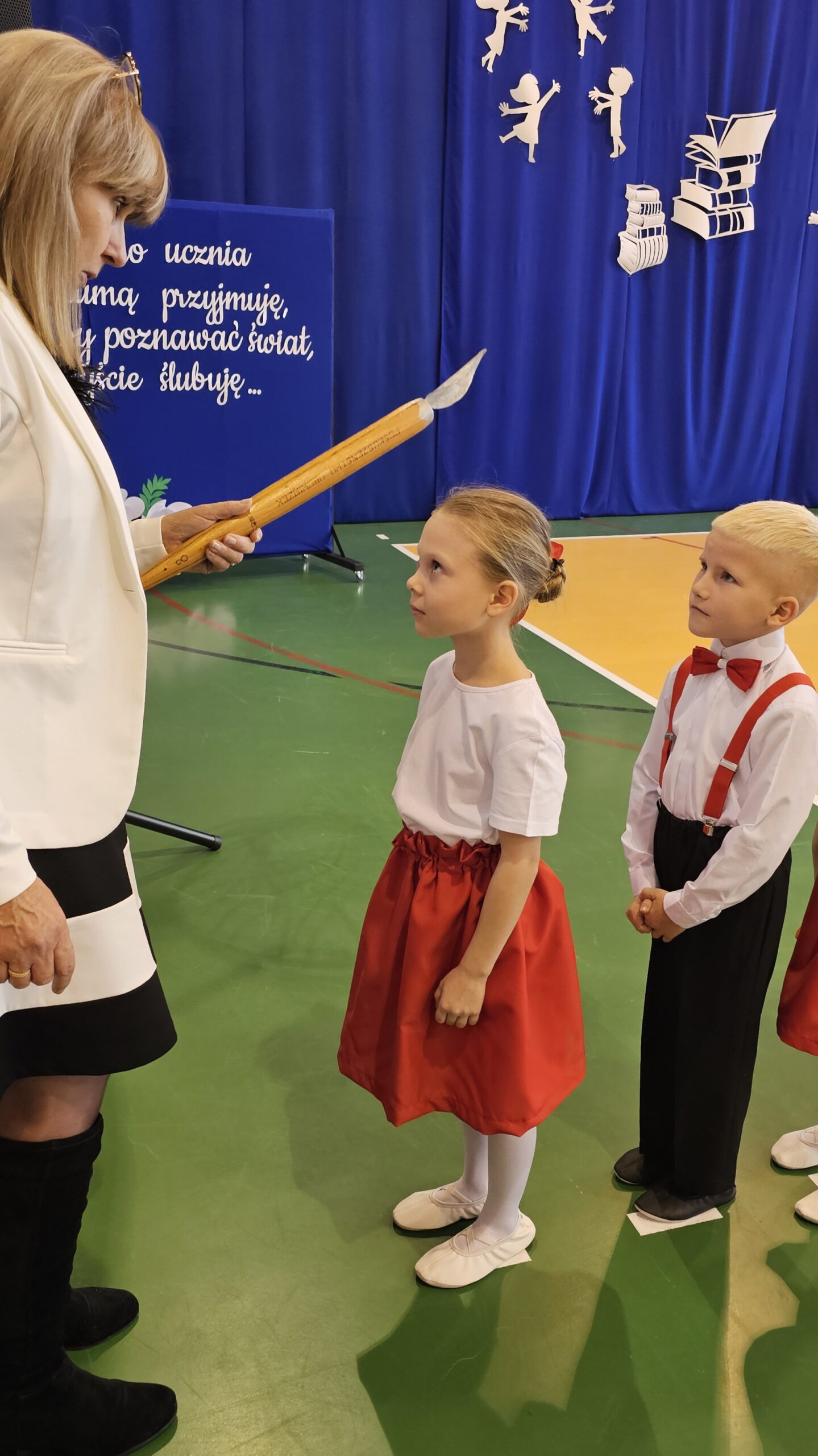 Tego dnia miało miejsce także wielkie wydarzenie – Ślubowanie klas pierwszych i pasowanie na uczniów. Pierwszoklasiści z dumą zaprezentowali swój program artystyczny, zaśpiewali, zatańczyli i z ogromnym przejęciem wypowiedzieli słowa ślubowania.