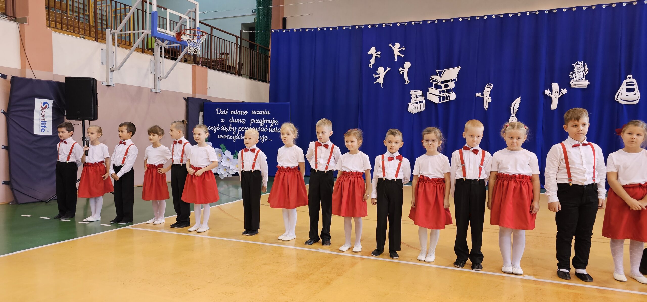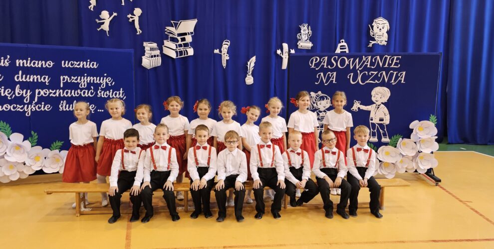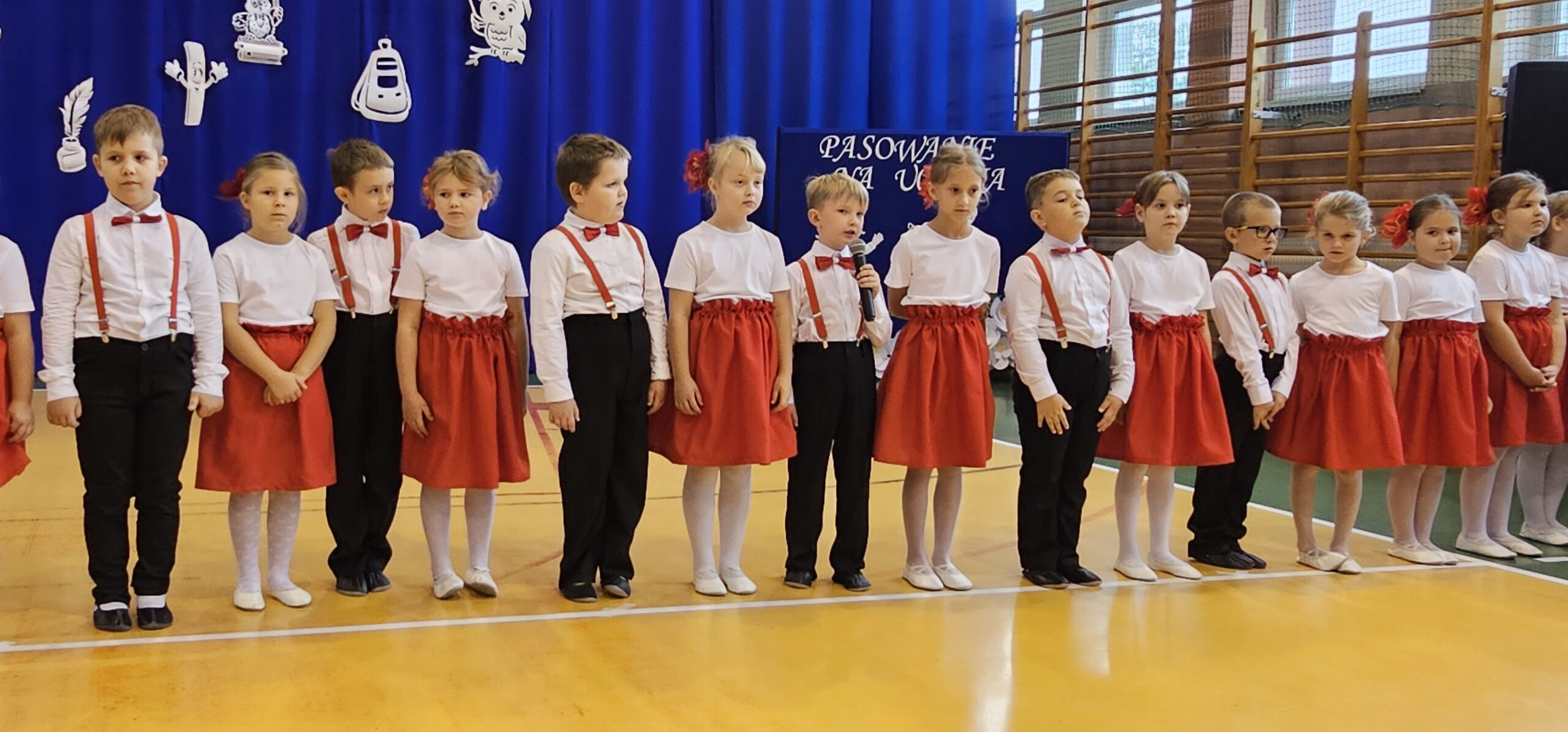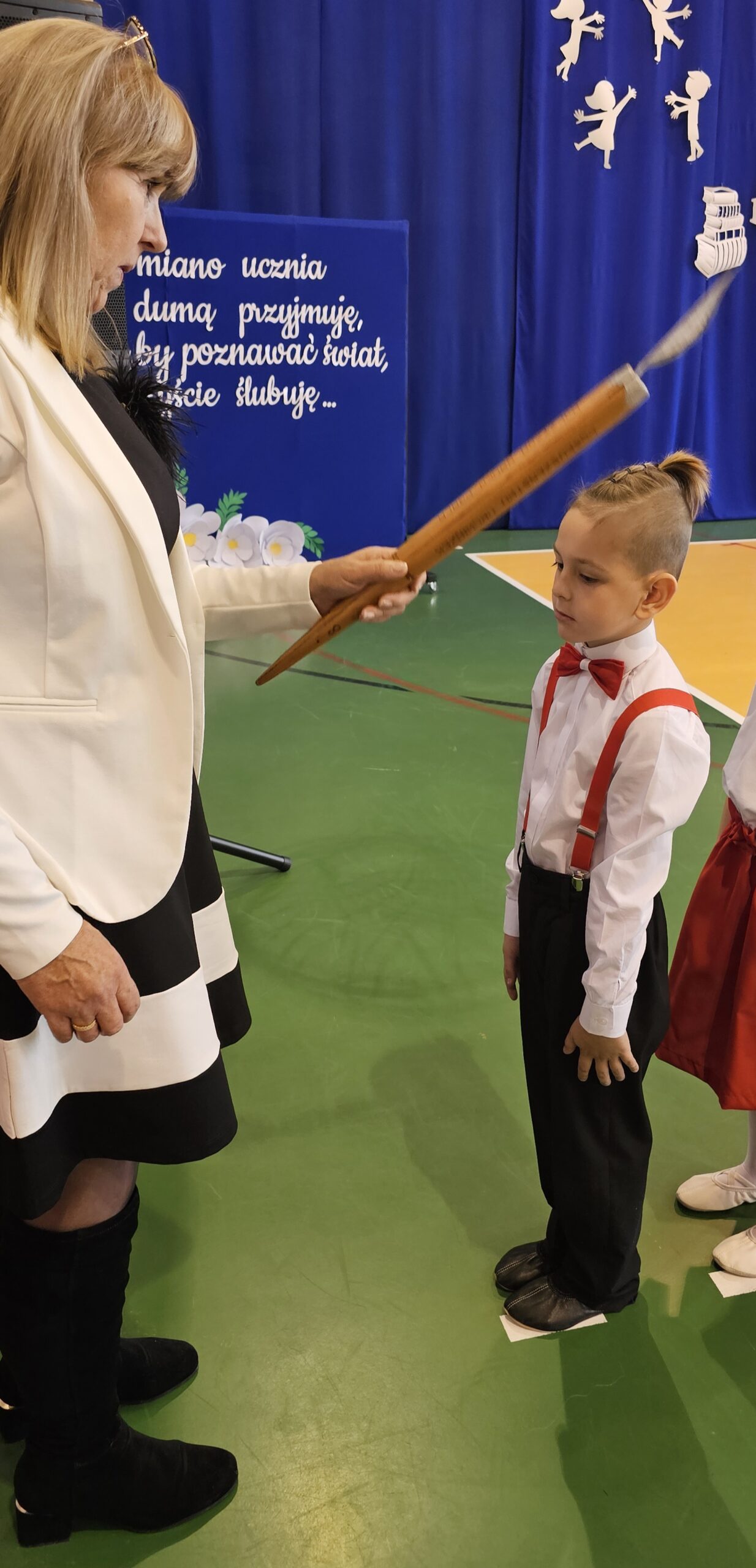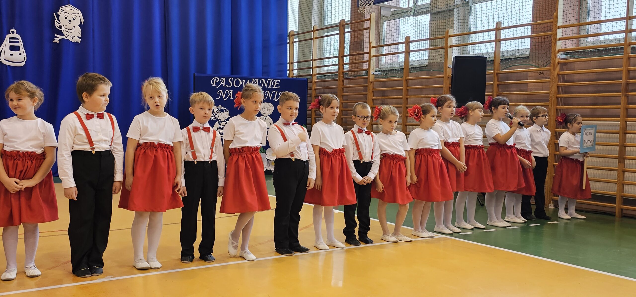 Tego dnia miało miejsce także wielkie wydarzenie – Ślubowanie klas pierwszych i pasowanie na uczniów. Pierwszoklasiści z dumą zaprezentowali swój program artystyczny, zaśpiewali, zatańczyli i z ogromnym przejęciem wypowiedzieli słowa ślubowania.