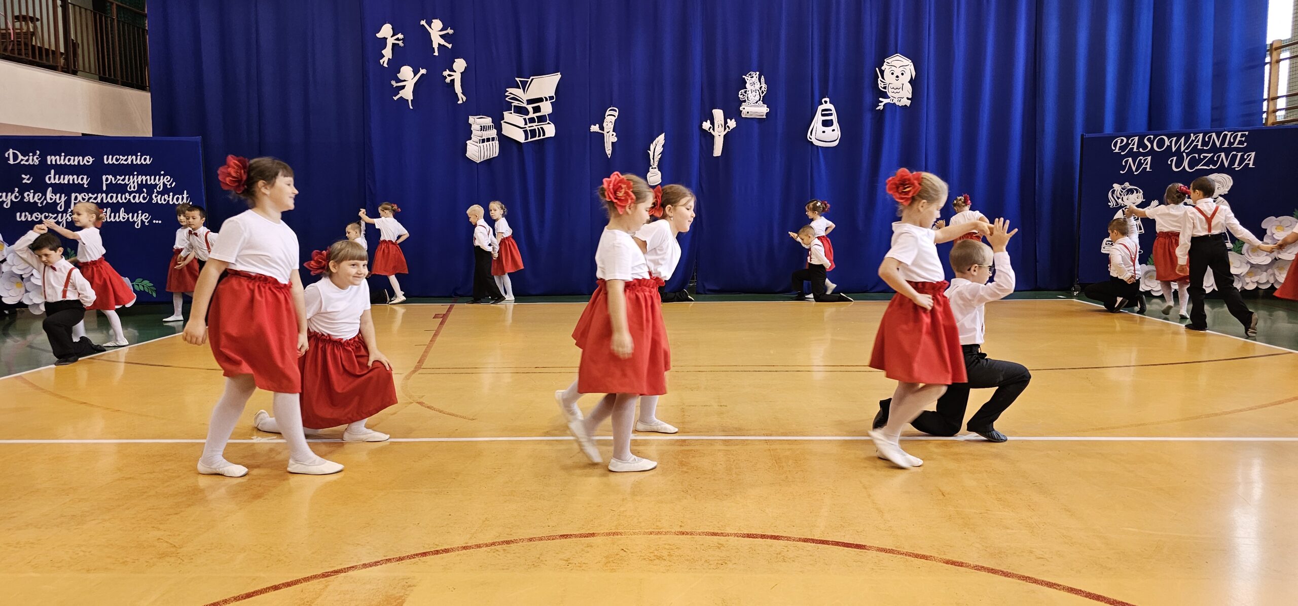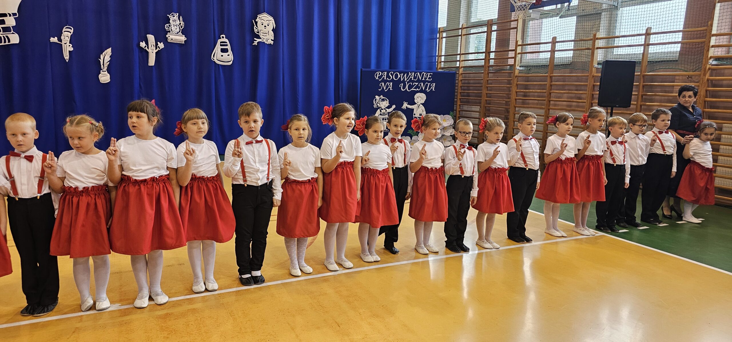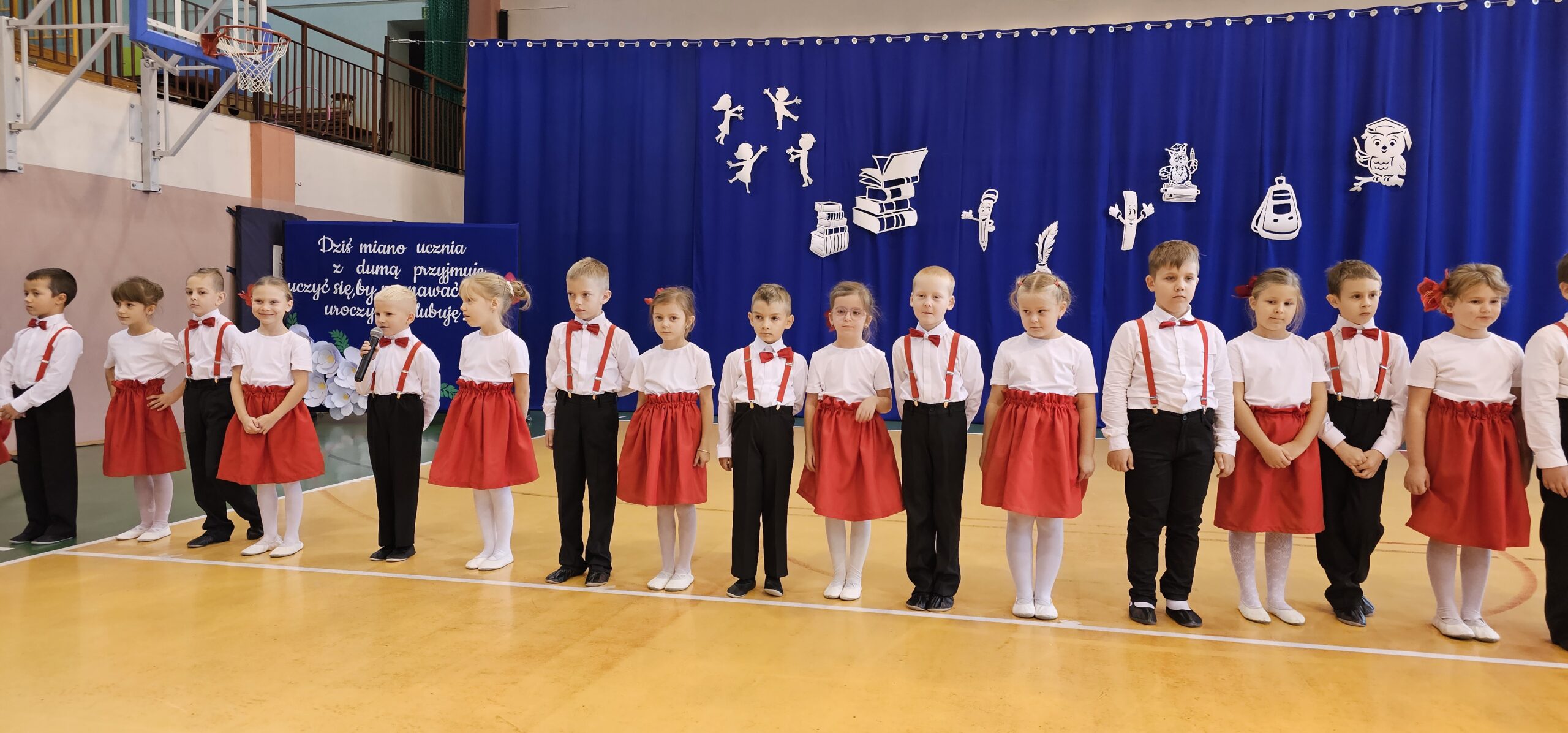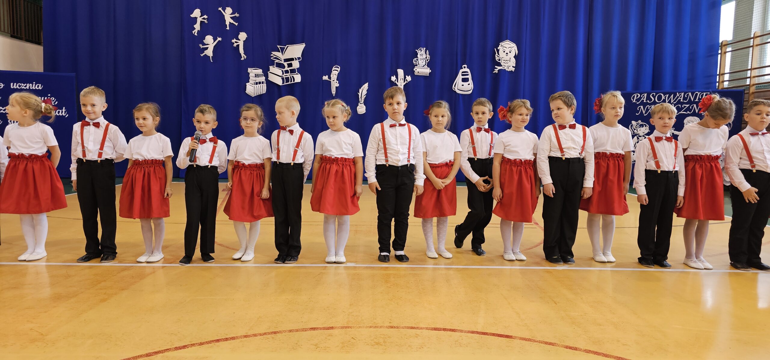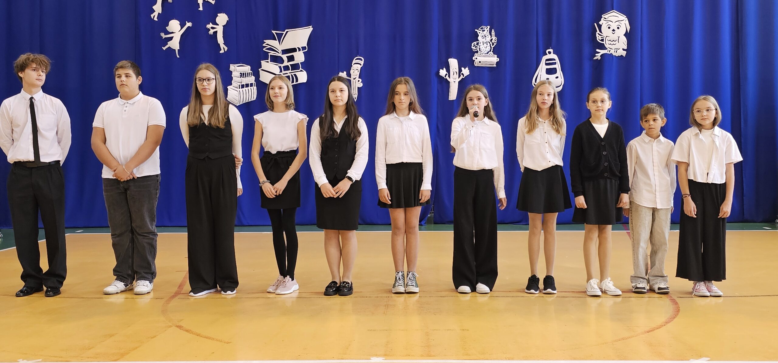 Tego dnia miało miejsce także wielkie wydarzenie – Ślubowanie klas pierwszych i pasowanie na uczniów. Pierwszoklasiści z dumą zaprezentowali swój program artystyczny, zaśpiewali, zatańczyli i z ogromnym przejęciem wypowiedzieli słowa ślubowania.