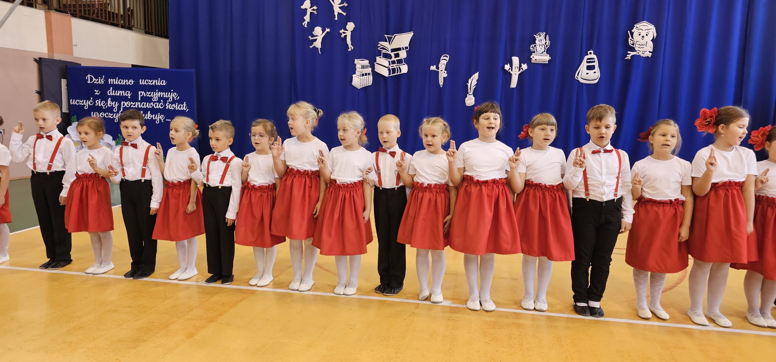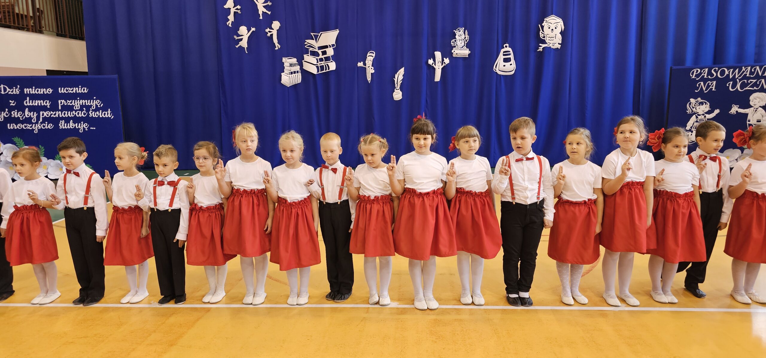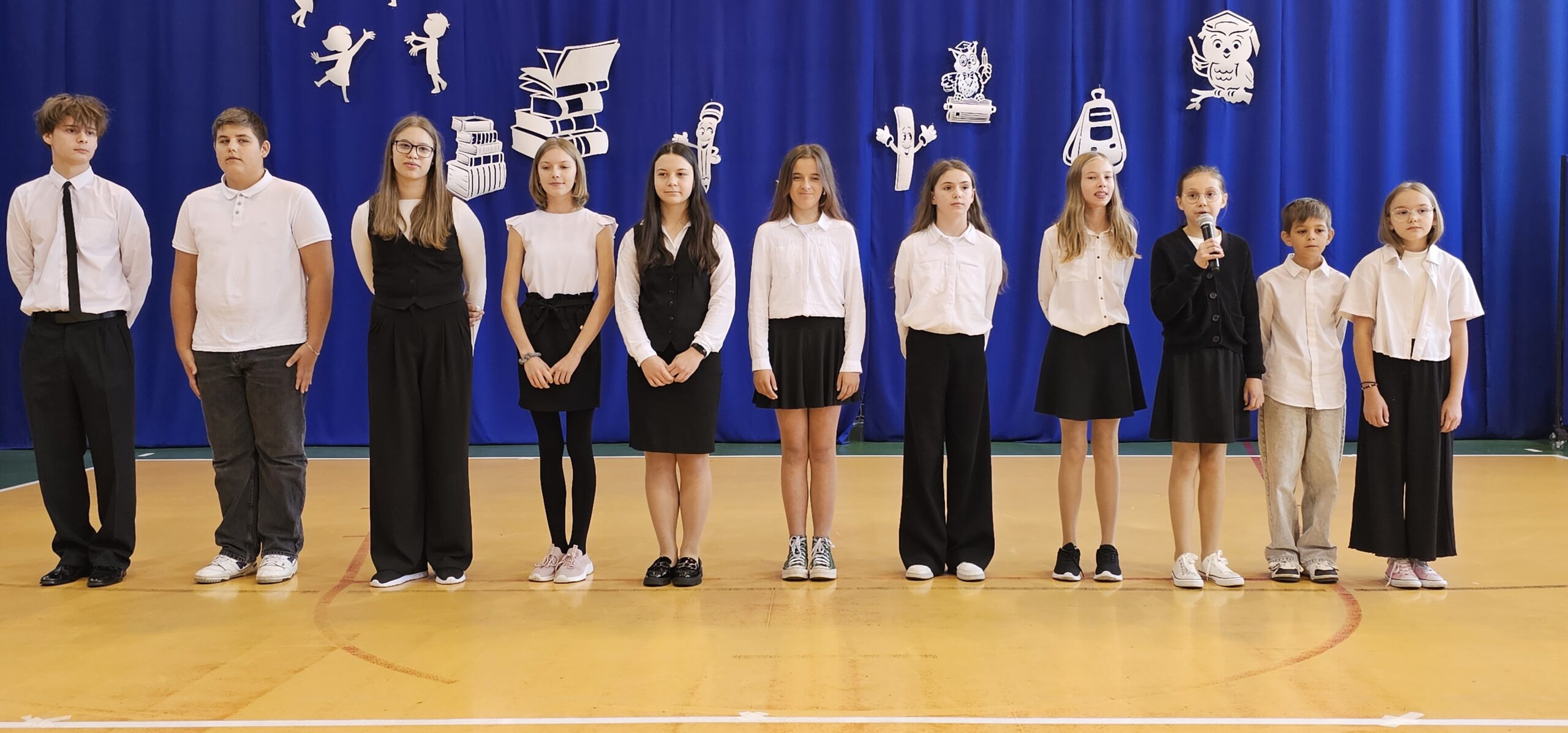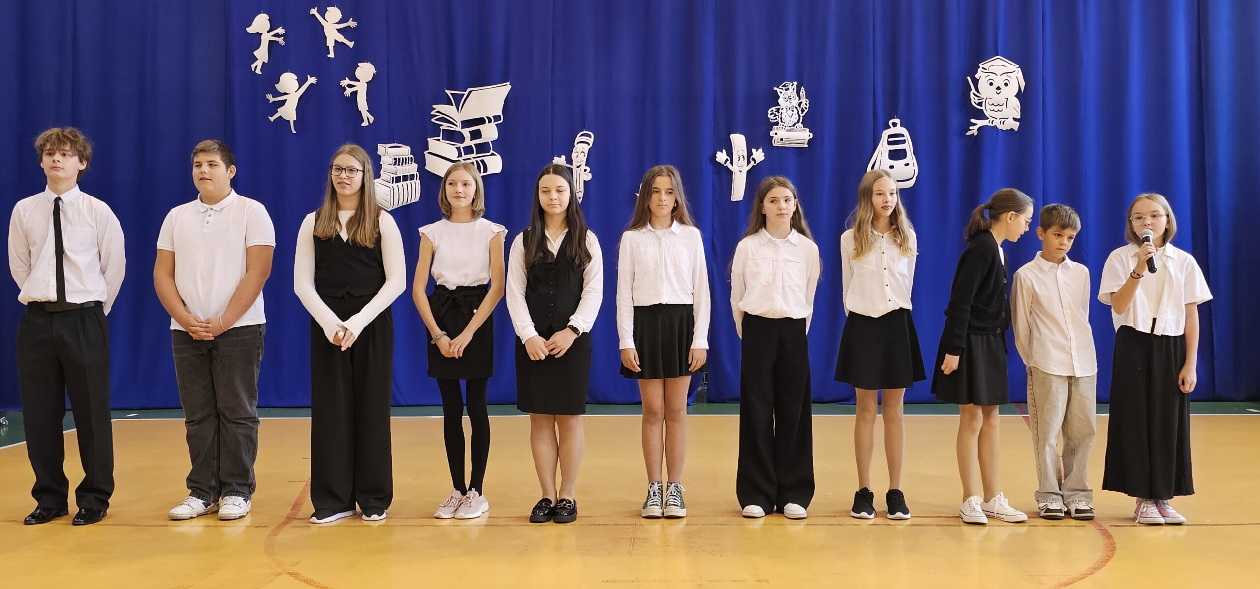 Tego dnia miało miejsce także wielkie wydarzenie – Ślubowanie klas pierwszych i pasowanie na uczniów. Pierwszoklasiści z dumą zaprezentowali swój program artystyczny, zaśpiewali, zatańczyli i z ogromnym przejęciem wypowiedzieli słowa ślubowania.