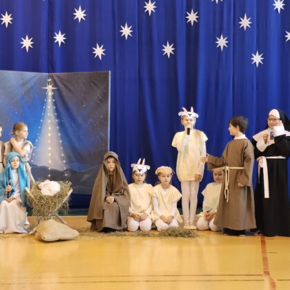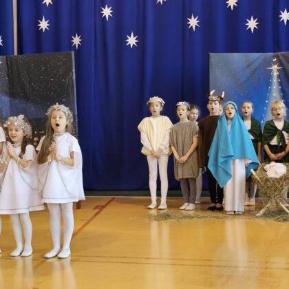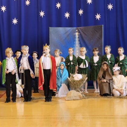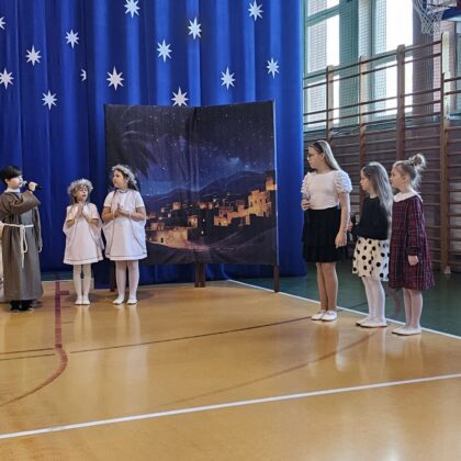 19 grudnia zespół Szczygiełki zaprezentował jasełka pt. „Światłość w ciemności świeci”. Przedstawienie wprowadziło całą społeczność szkolną w wyjątkowy, świąteczny nastrój oraz skłoniło do głębokiej refleksji nad sensem Bożego Narodzenia.