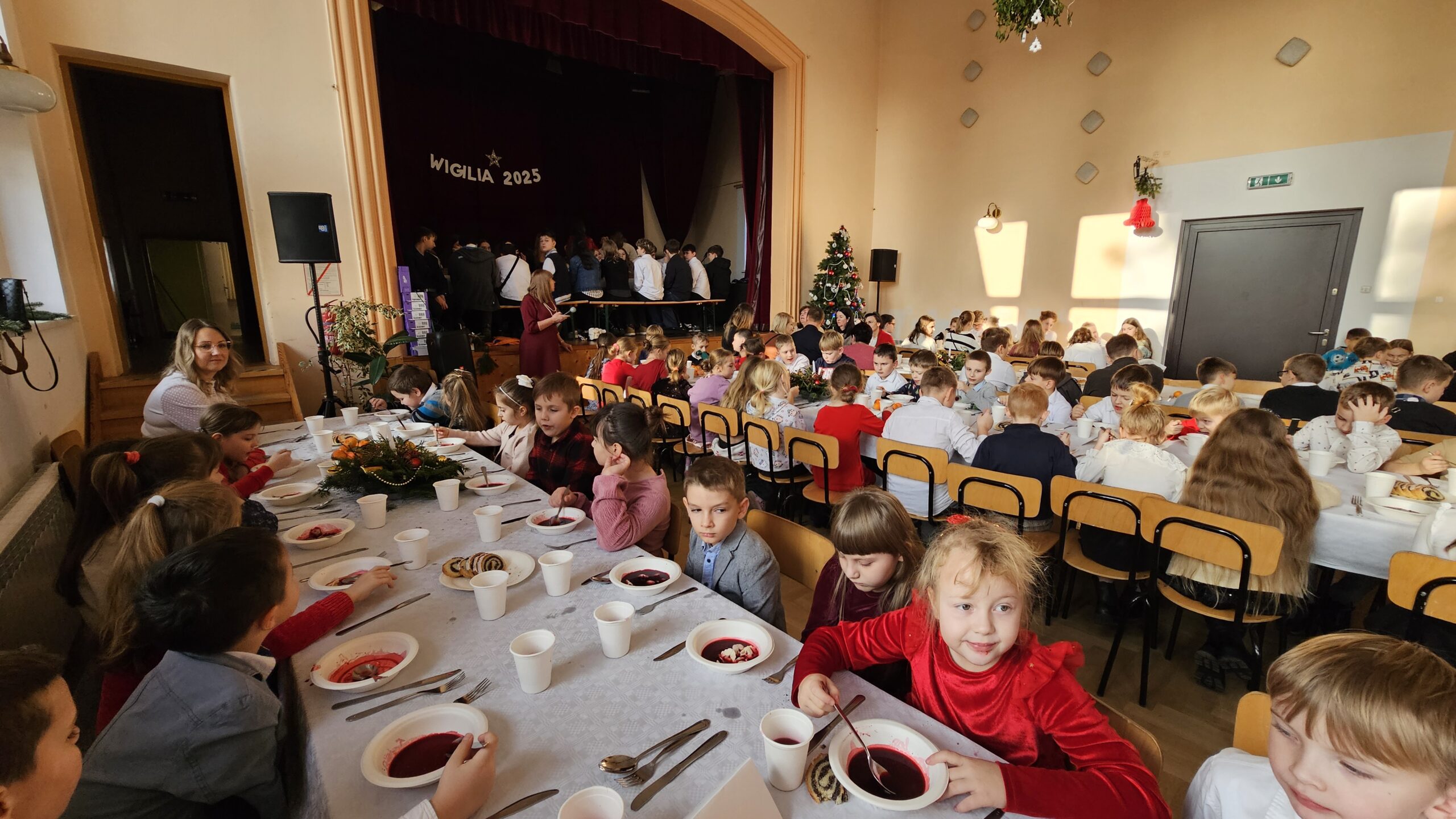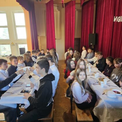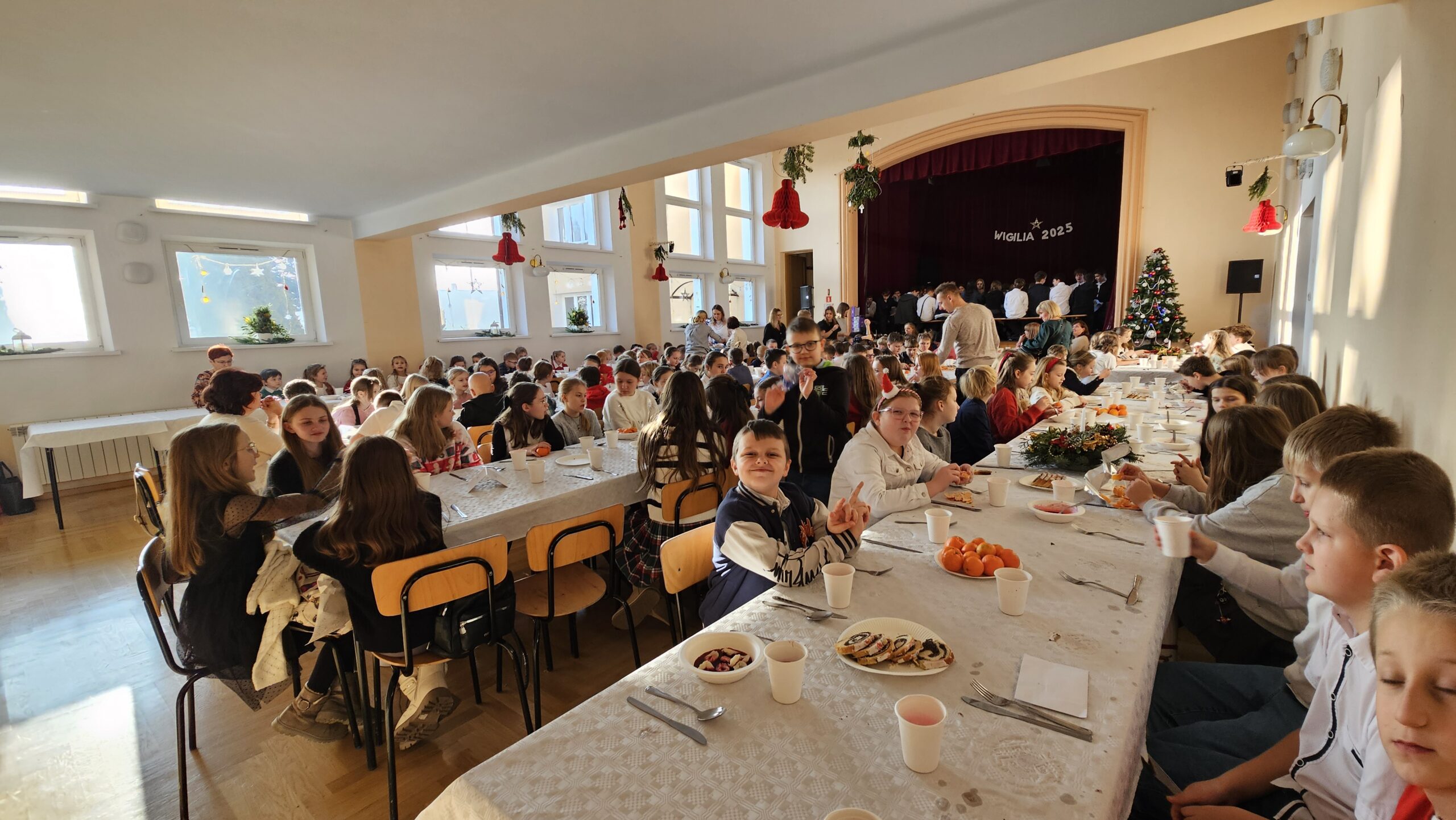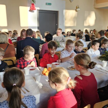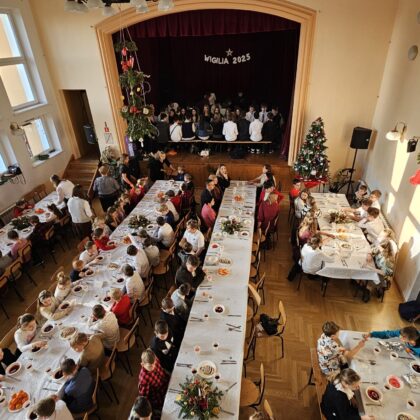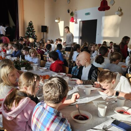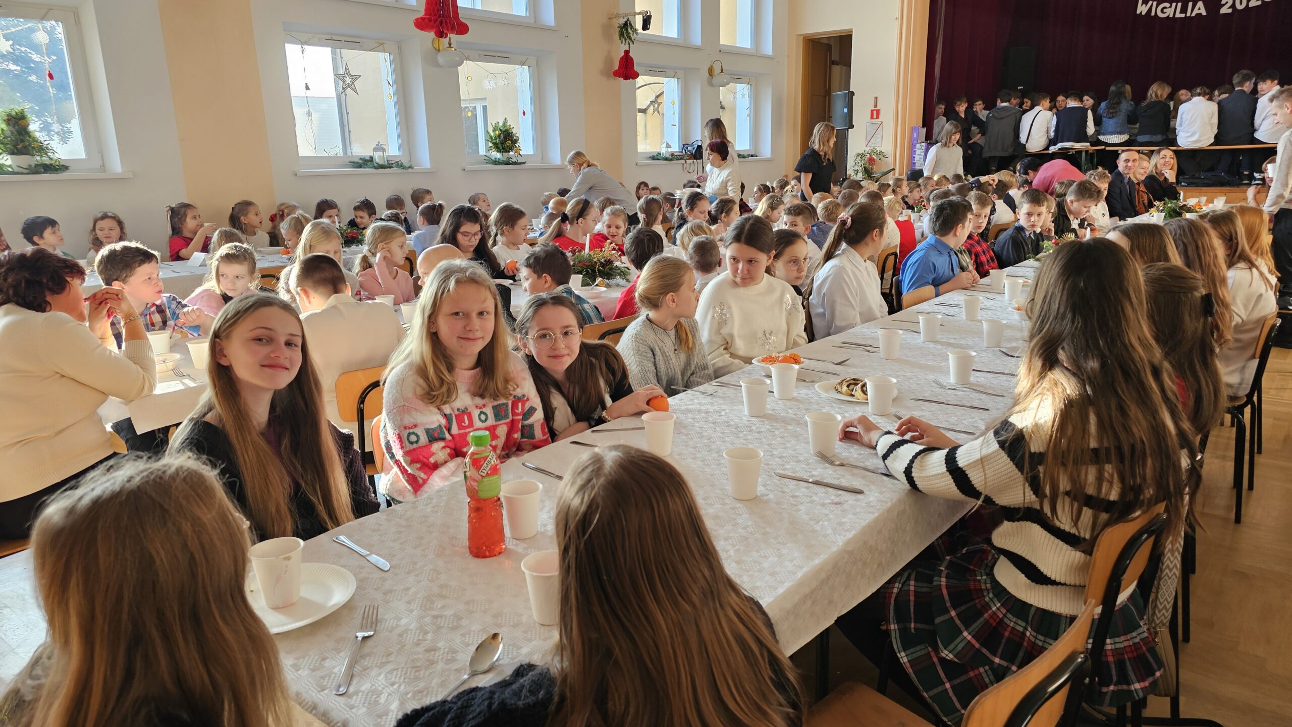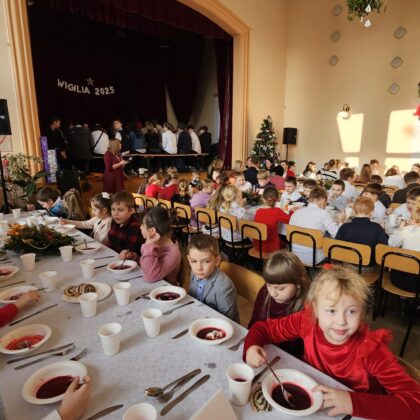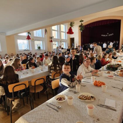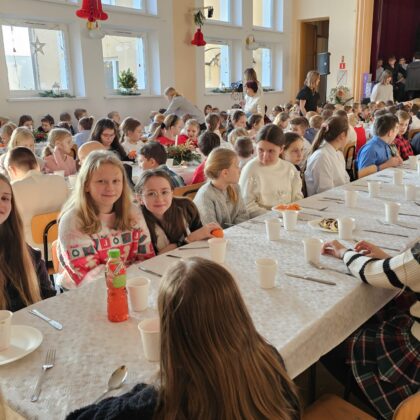 Po przedstawieniu wszyscy udali się do Domu Kultury, gdzie odbyła się wspólna szkolna wigilia. Był to czas pełen ciepła i serdecznych rozmów. Wspólne kolędowanie i świąteczne życzenia stworzyły rodzinną, pełną jedności atmosferę, która umocniła poczucie wspólnoty w naszej szkolnej społeczności.