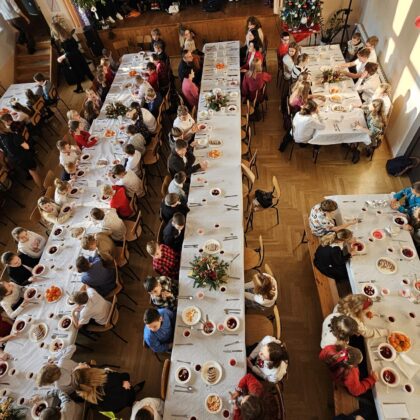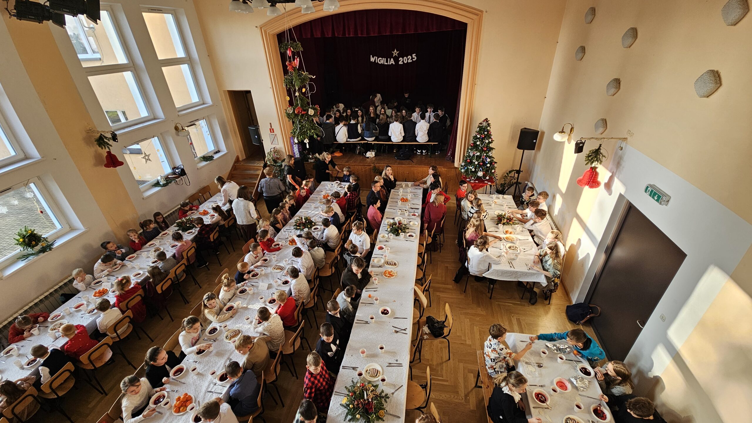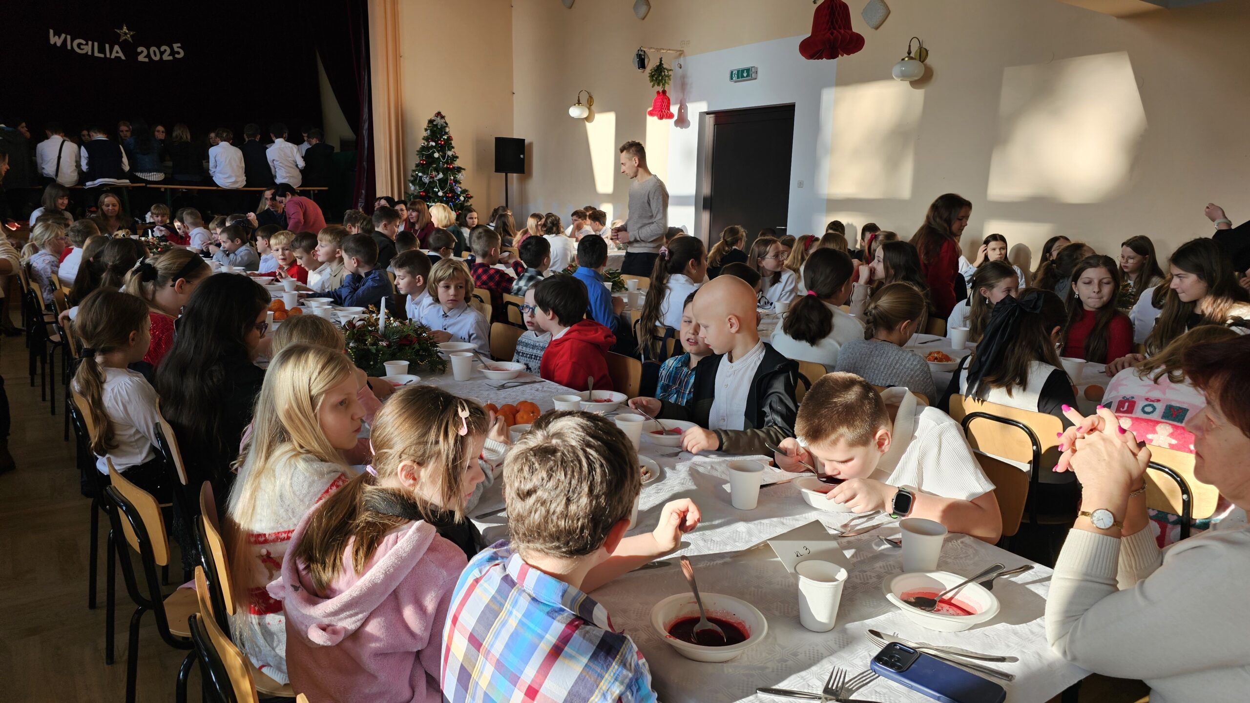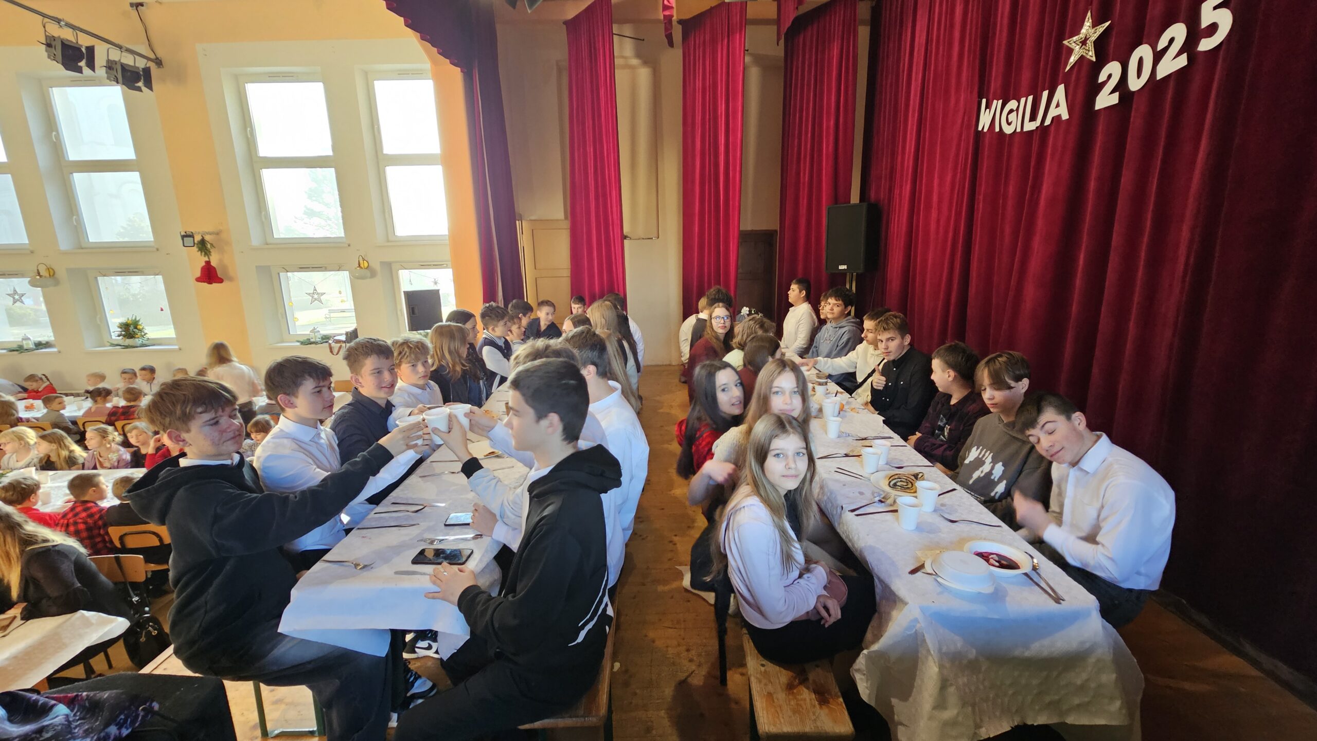 Po przedstawieniu wszyscy udali się do Domu Kultury, gdzie odbyła się wspólna szkolna wigilia. Był to czas pełen ciepła i serdecznych rozmów. Wspólne kolędowanie i świąteczne życzenia stworzyły rodzinną, pełną jedności atmosferę, która umocniła poczucie wspólnoty w naszej szkolnej społeczności.