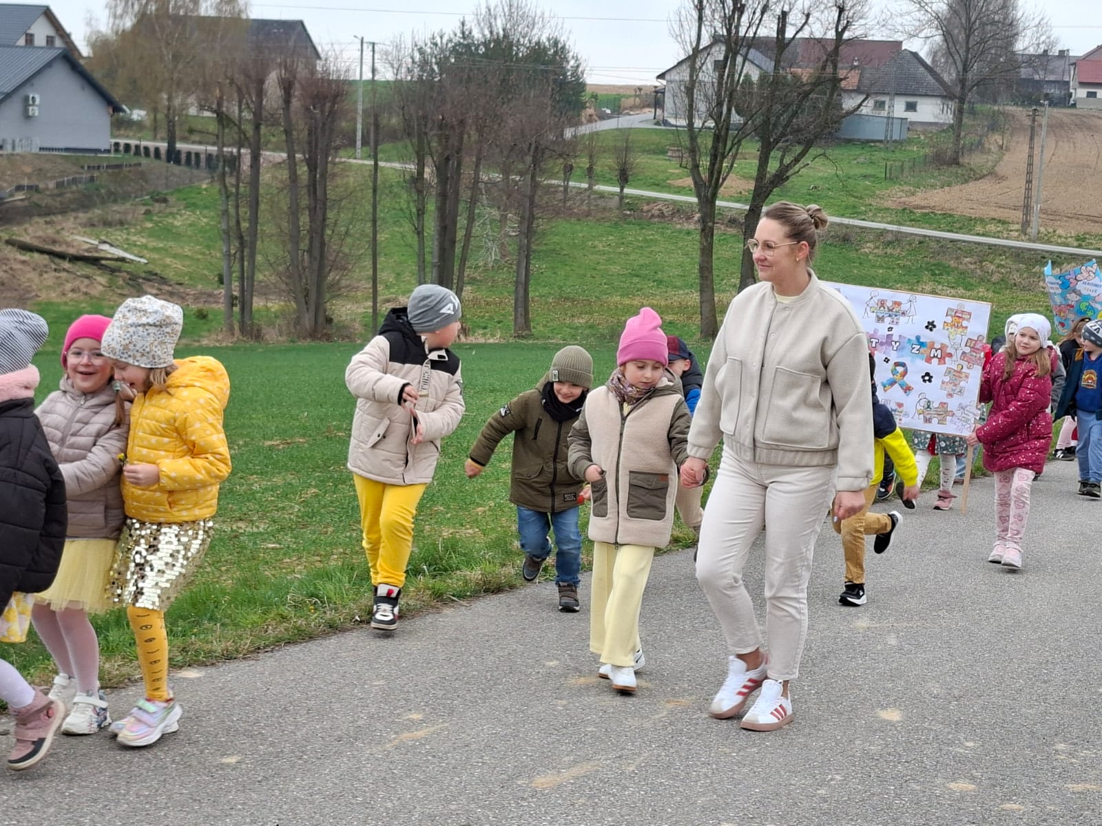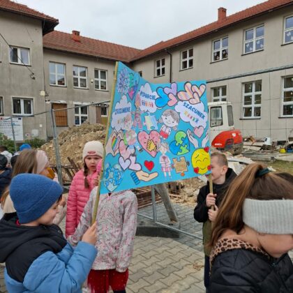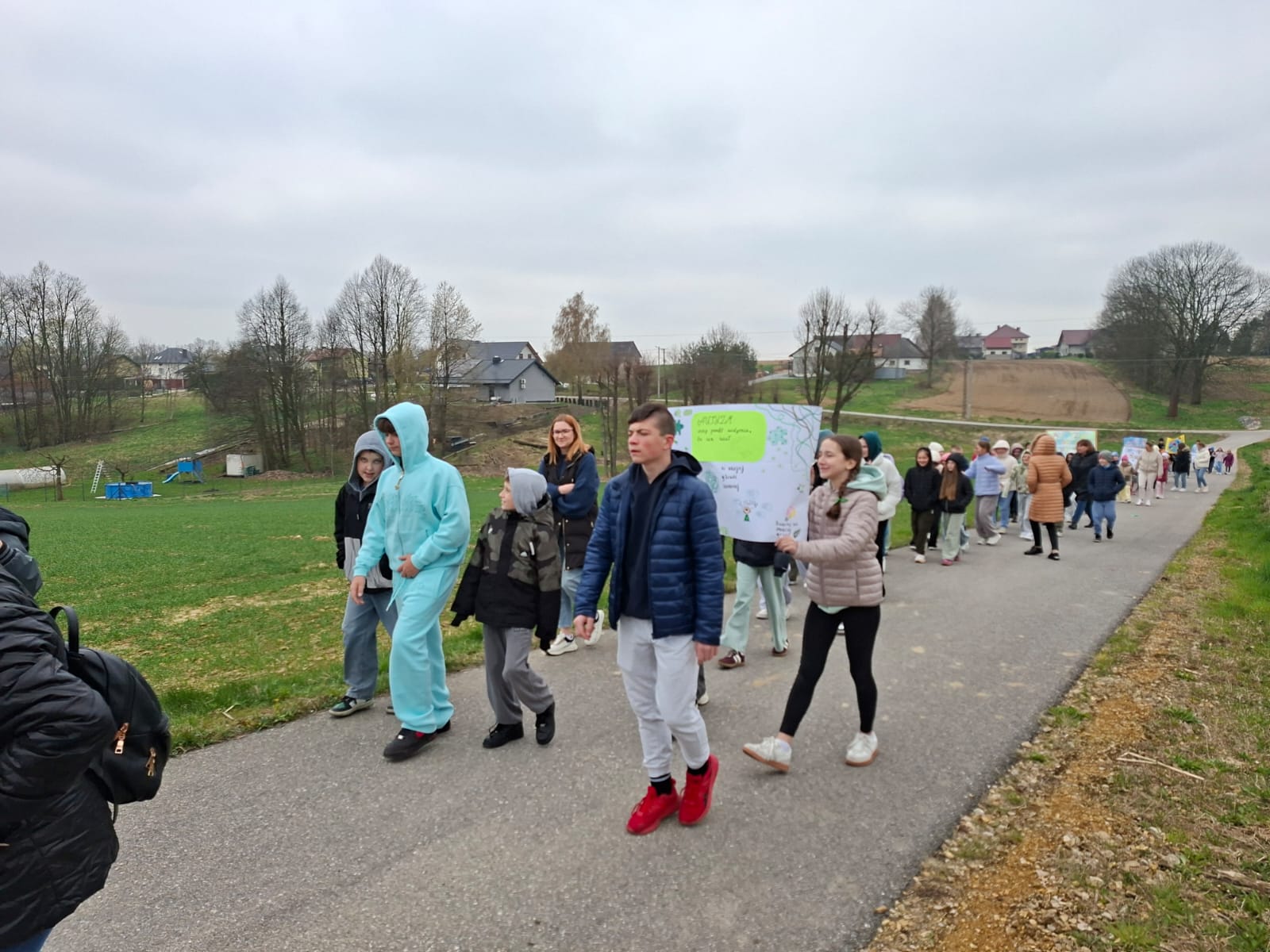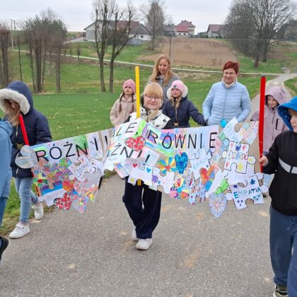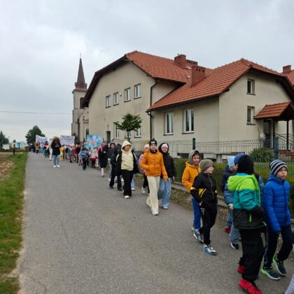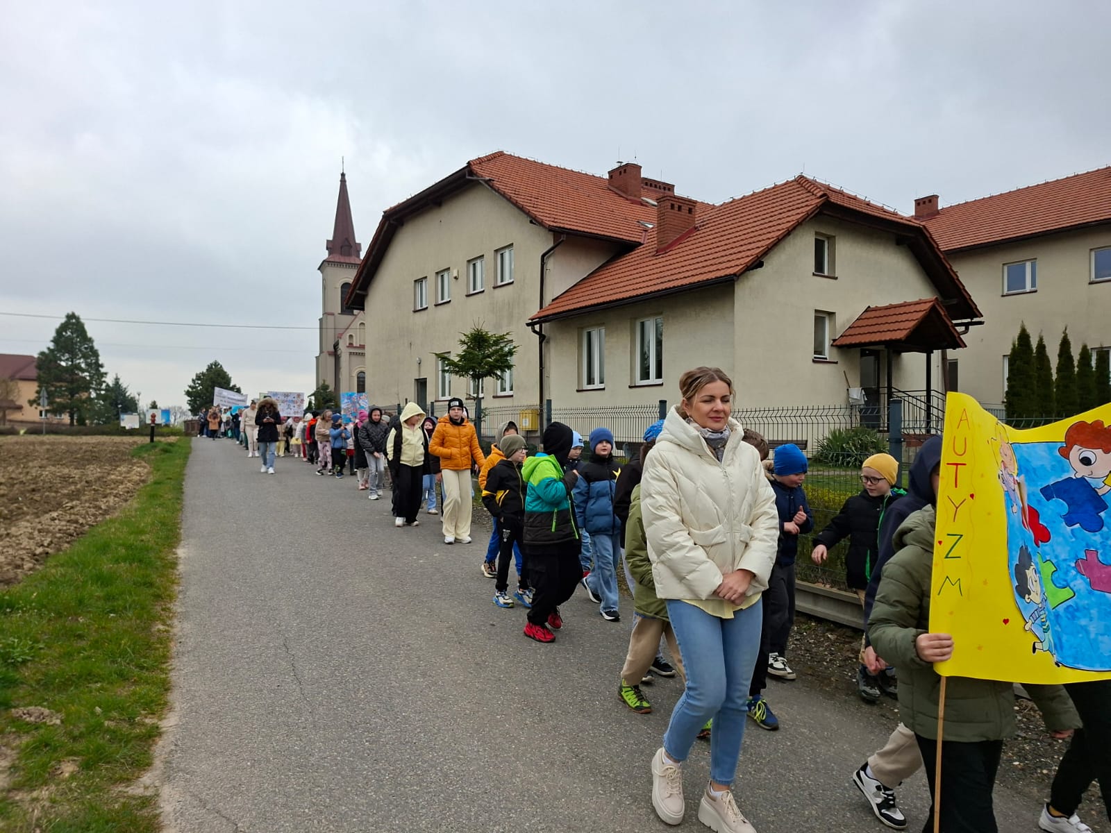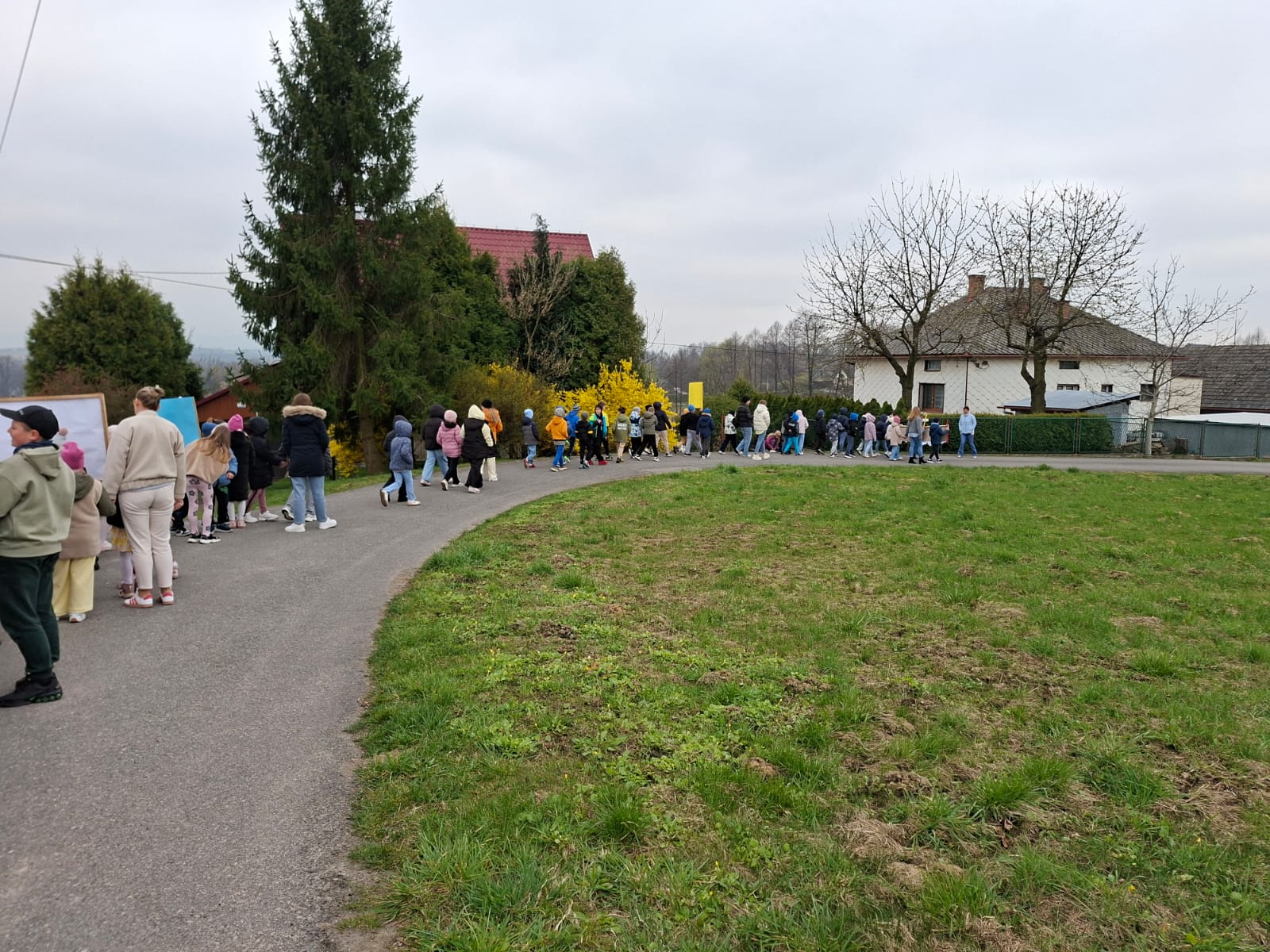 Po zakończeniu prac plastycznych cała społeczność szkolna wyruszyła na wspólny spacer po okolicy. Chcieliśmy w ten sposób pokazać nasze wsparcie i zwrócić uwagę mieszkańców na to, jak ważna jest otwartość na drugiego człowieka.