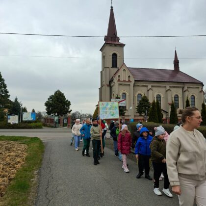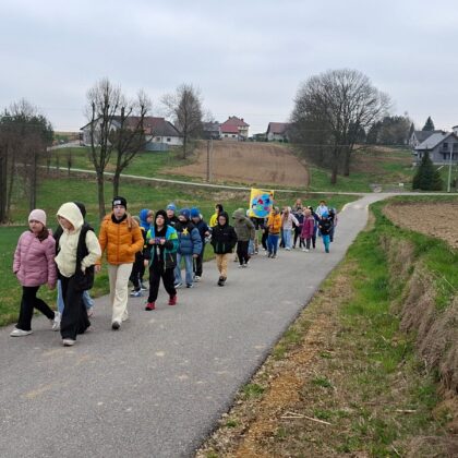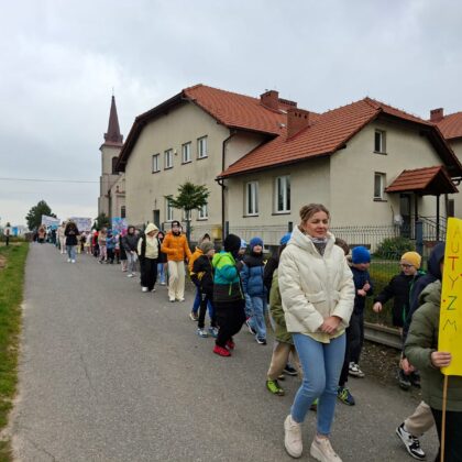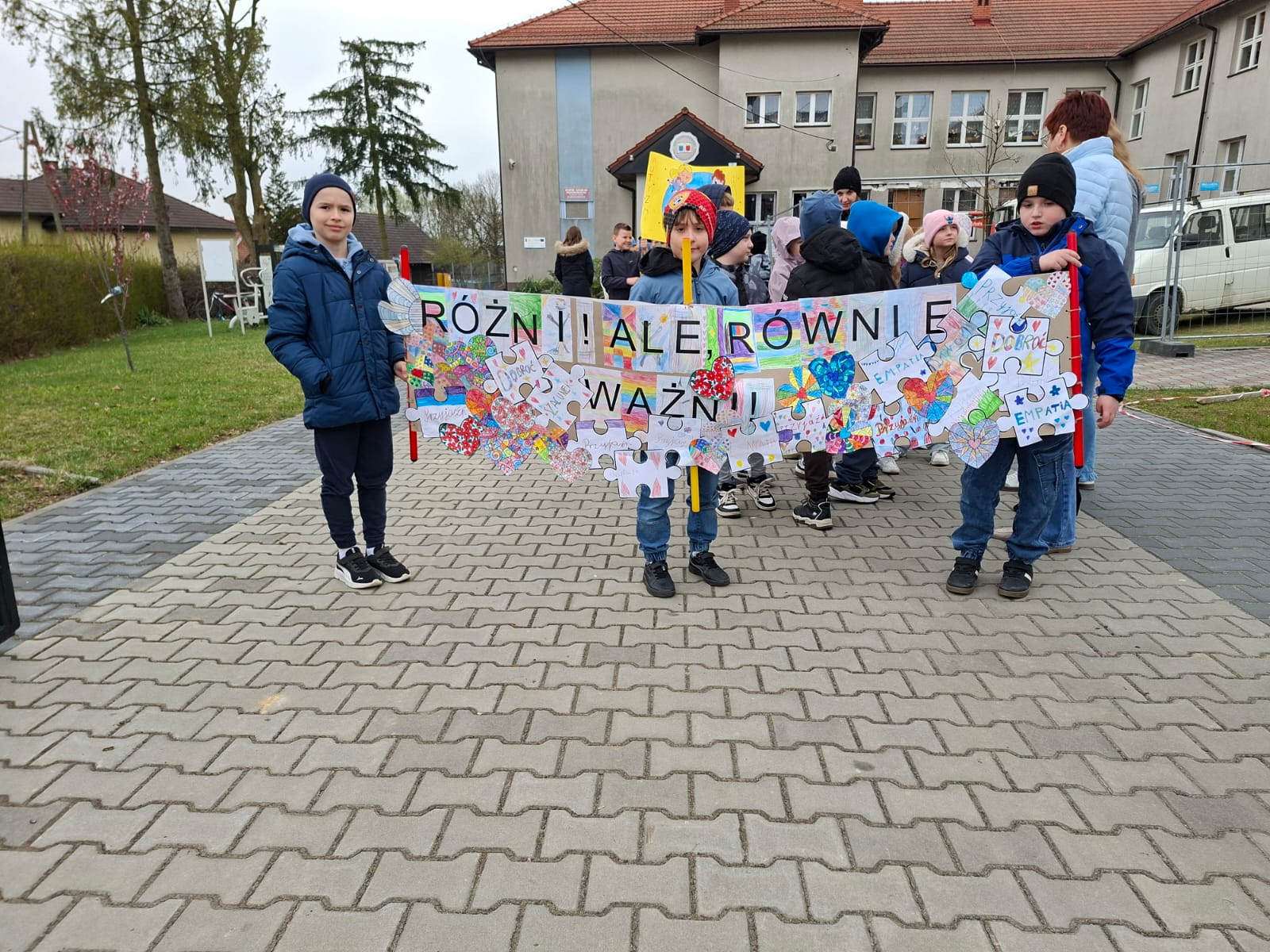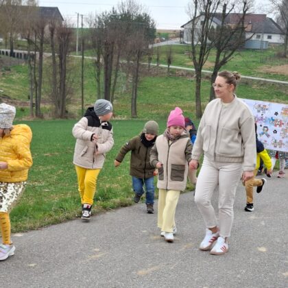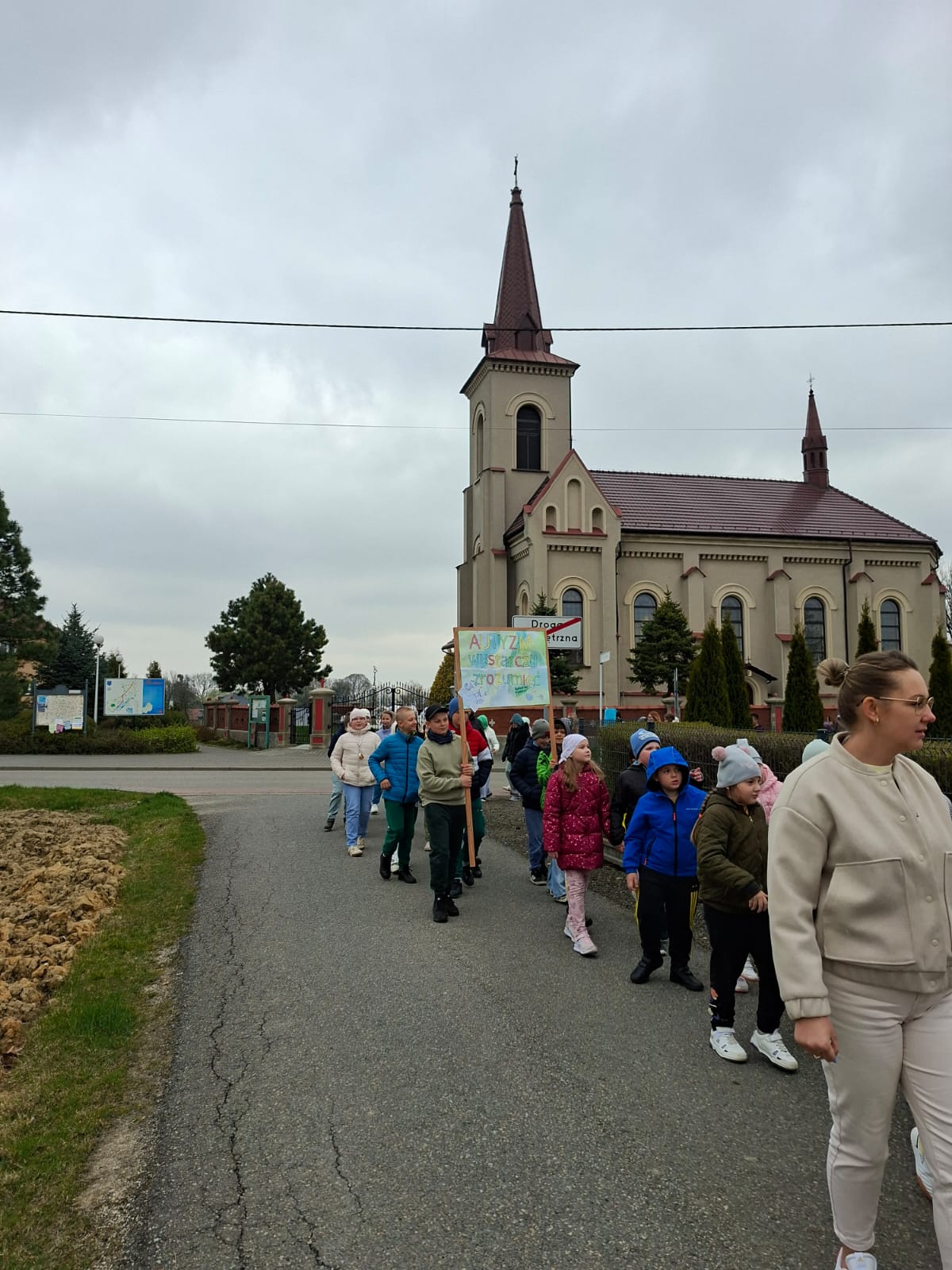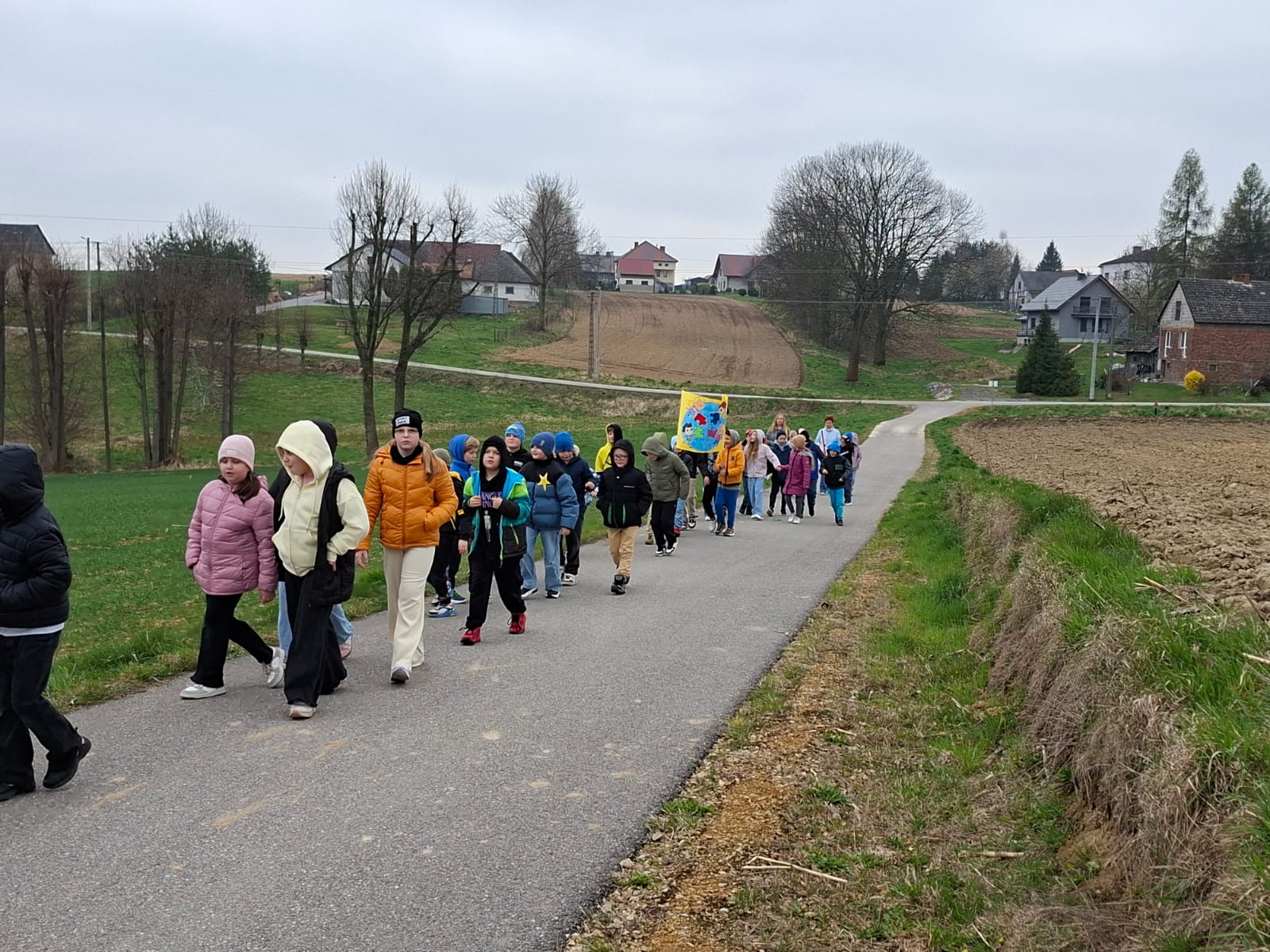 Po zakończeniu prac plastycznych cała społeczność szkolna wyruszyła na wspólny spacer po okolicy. Chcieliśmy w ten sposób pokazać nasze wsparcie i zwrócić uwagę mieszkańców na to, jak ważna jest otwartość na drugiego człowieka.