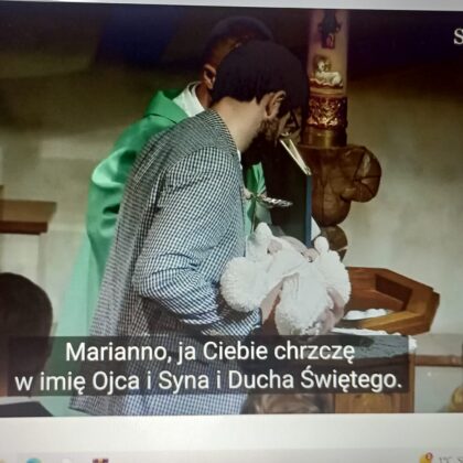 W ramach lekcji z Laboratorium przyszłości klasa 6 w dniu 3 marca 2026r. na lekcji religii omawiała temat: “Sakrament chrztu ” wykorzystując aparat fotograficzny, laptop.