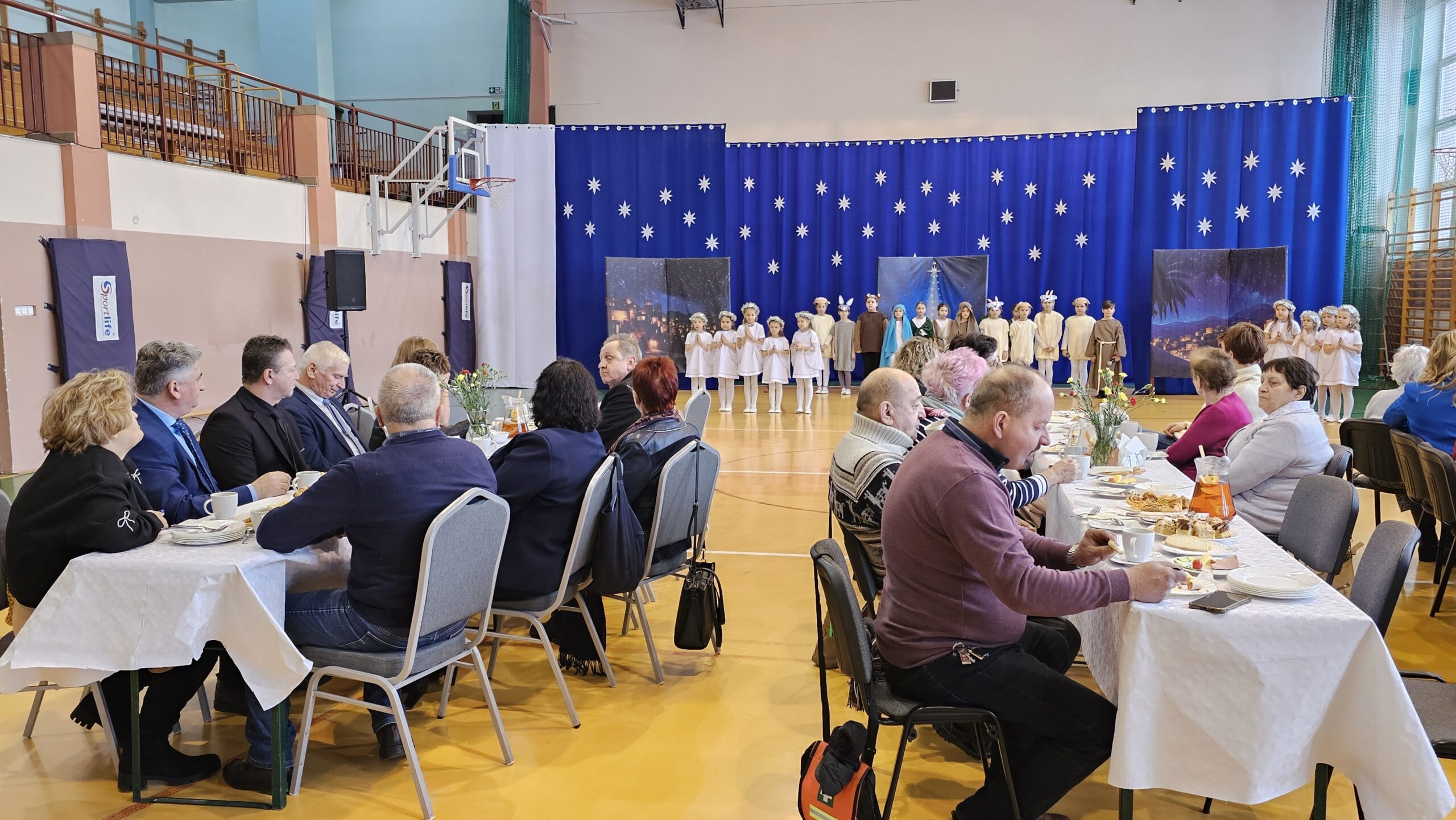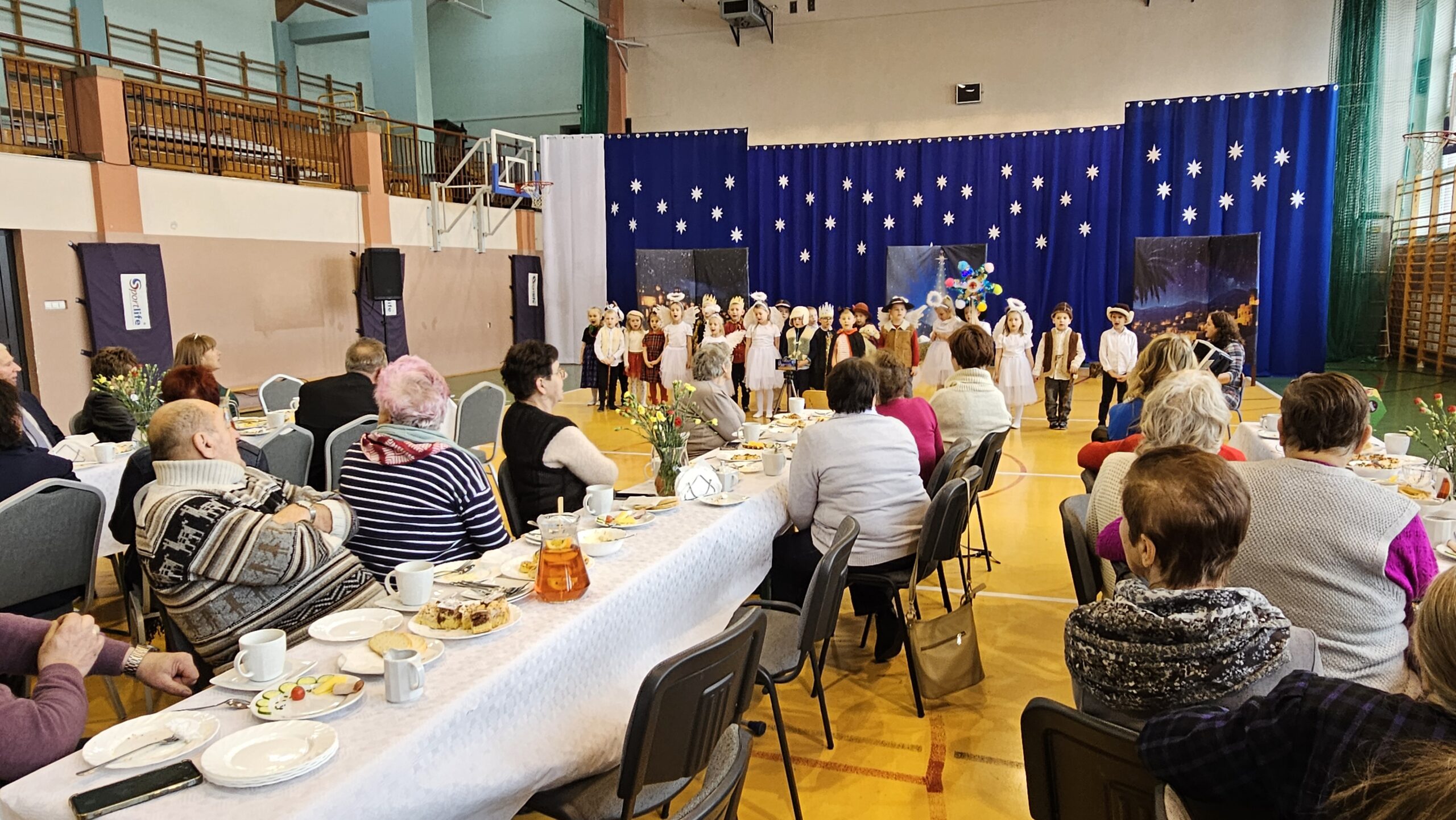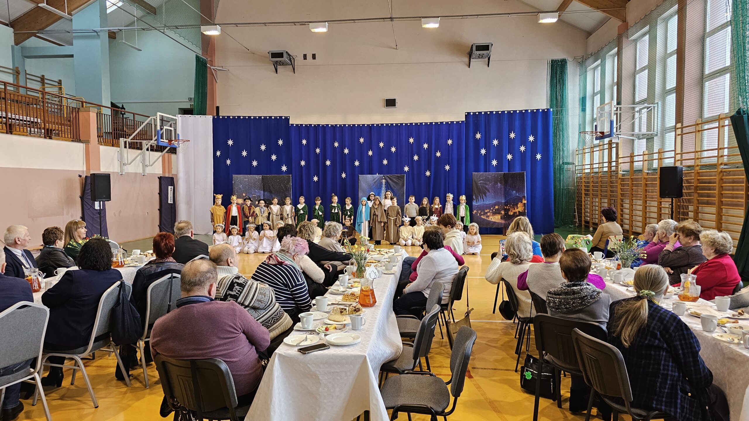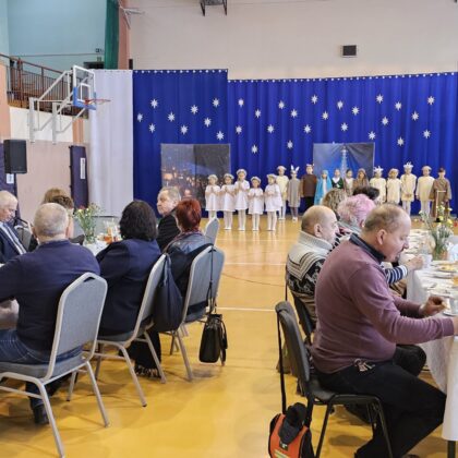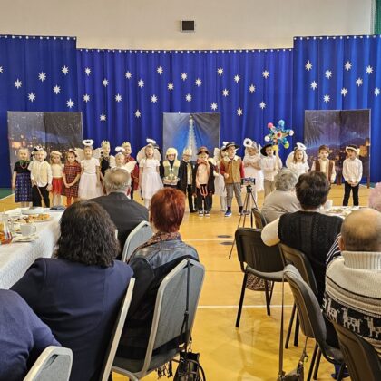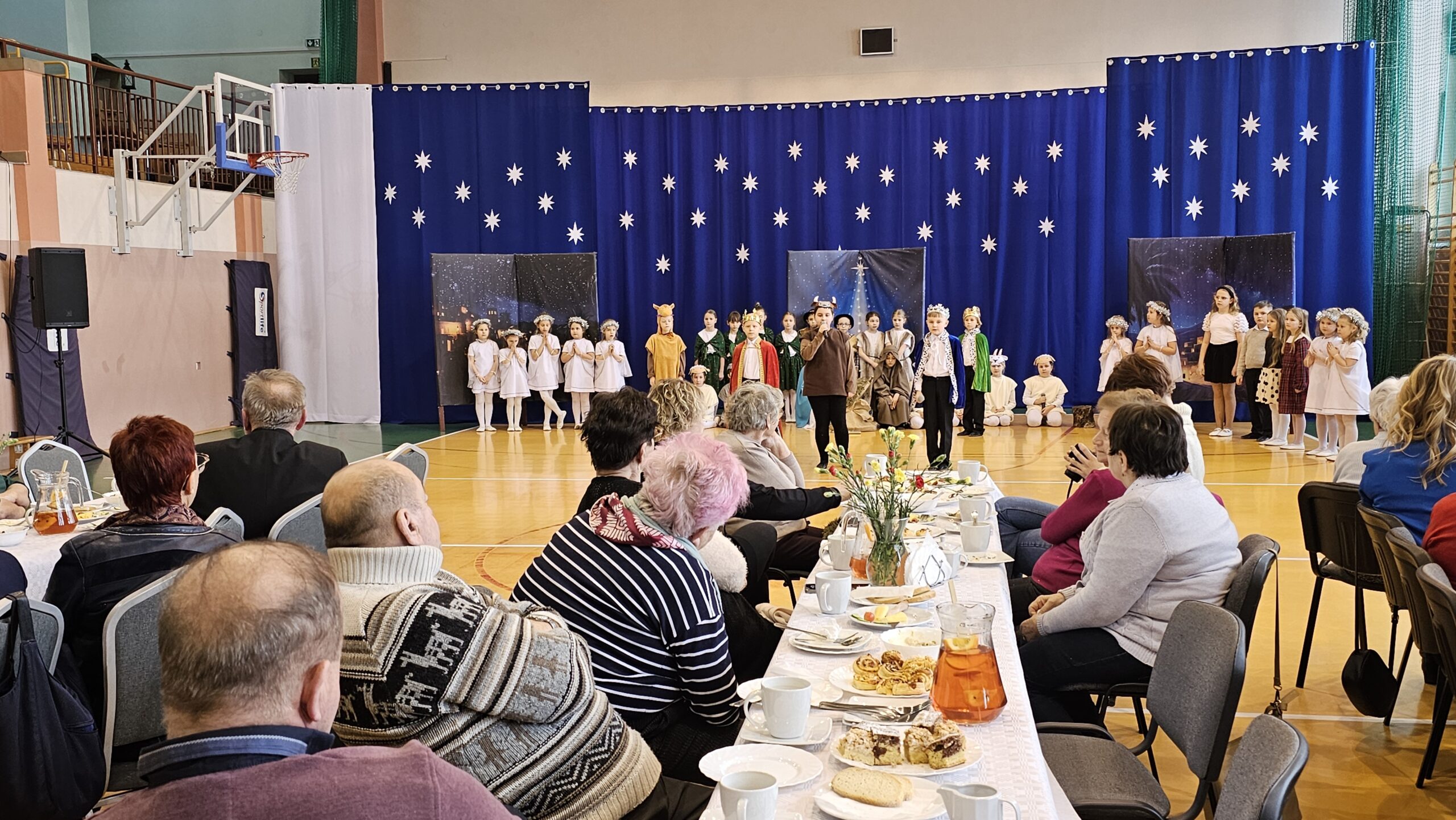 Podczas wydarzenia zespół Szczygielki zaprezentował piękne jasełka, które wzruszyły i zachwyciły zgromadzoną publiczność. Do wspólnego kolędowania dołączyła także grupa przedszkolna Sówki.
