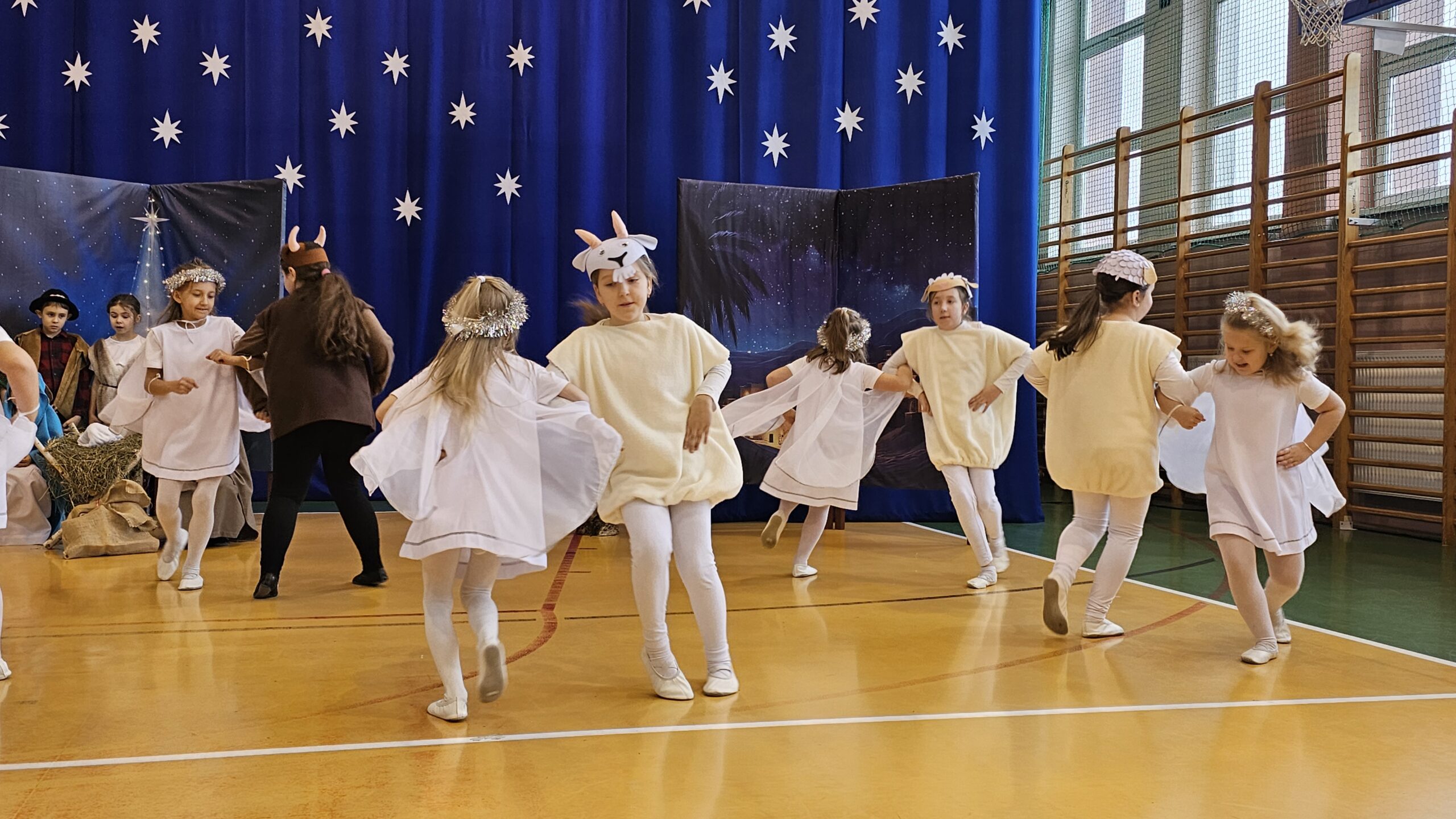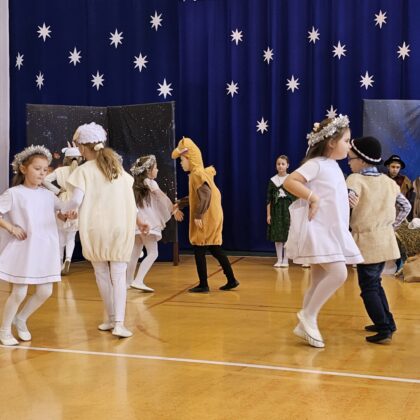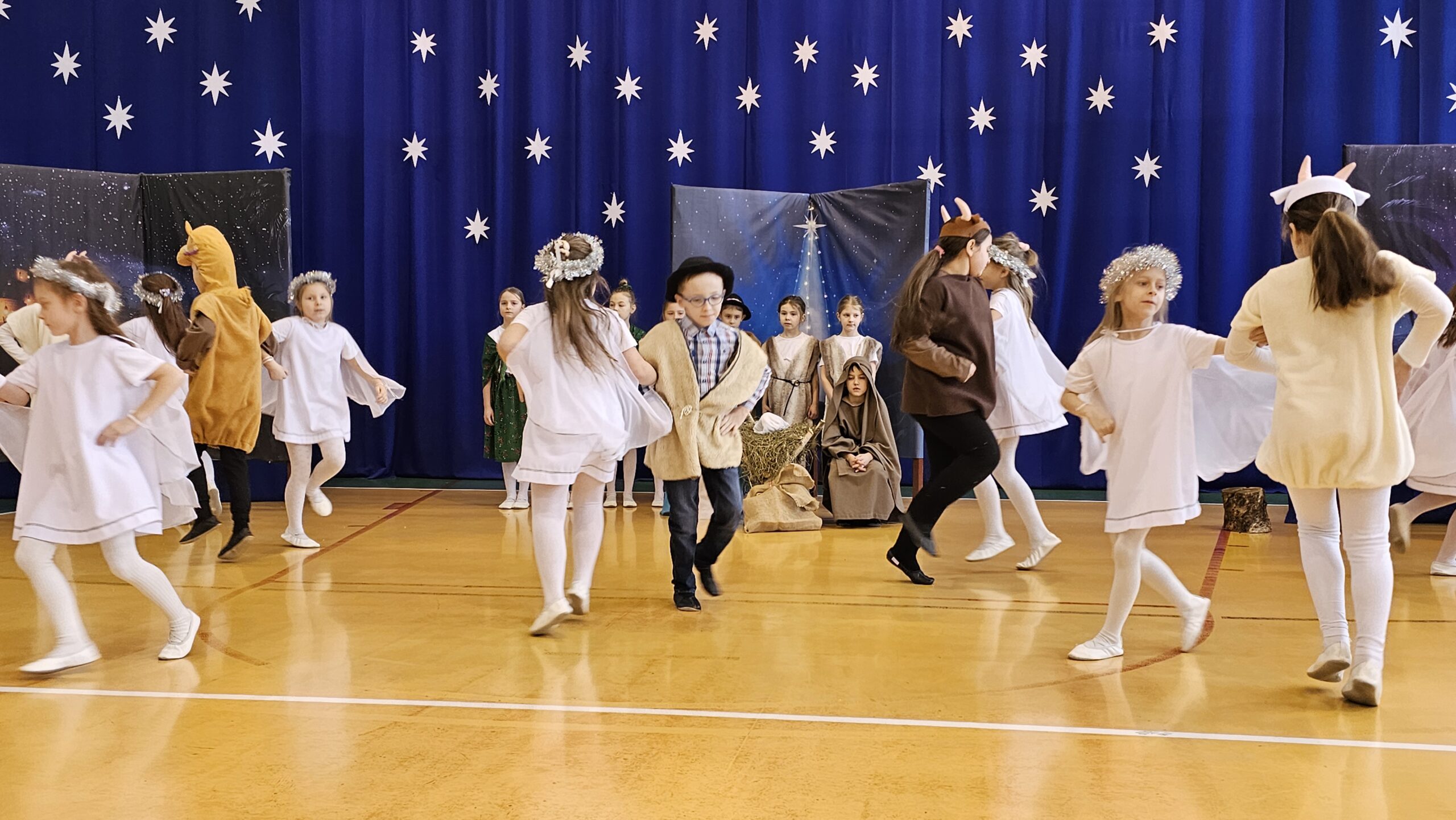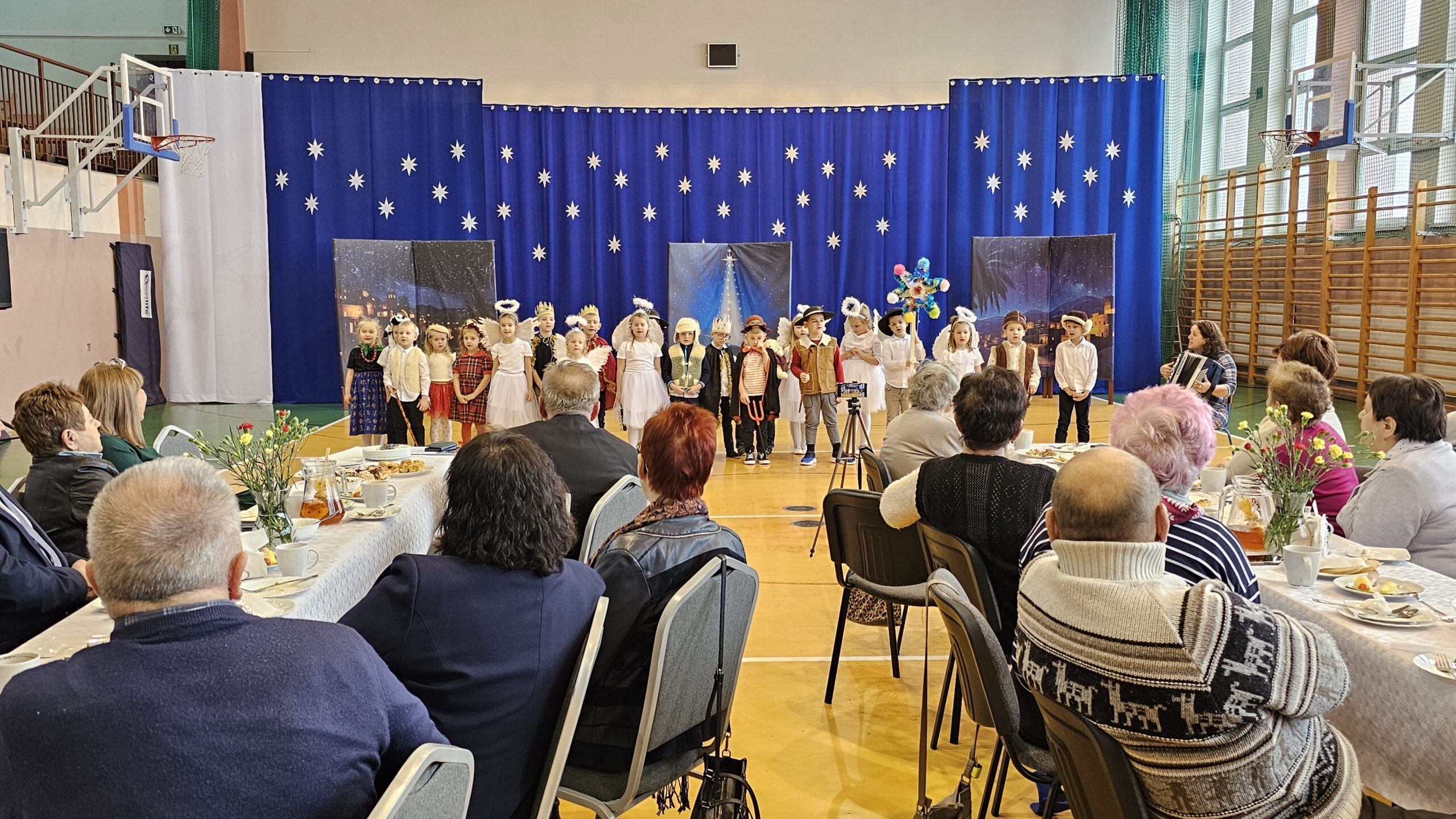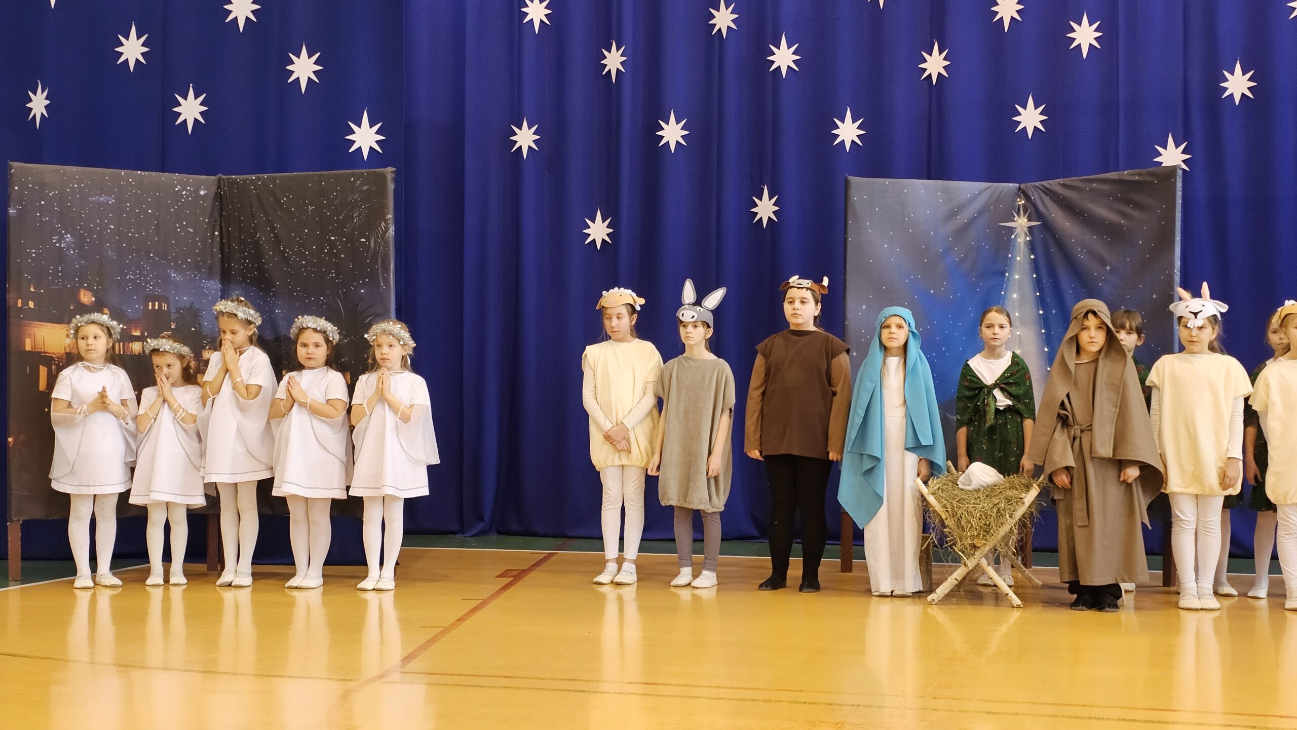 Podczas wydarzenia zespół Szczygielki zaprezentował piękne jasełka, które wzruszyły i zachwyciły zgromadzoną publiczność. Do wspólnego kolędowania dołączyła także grupa przedszkolna Sówki.