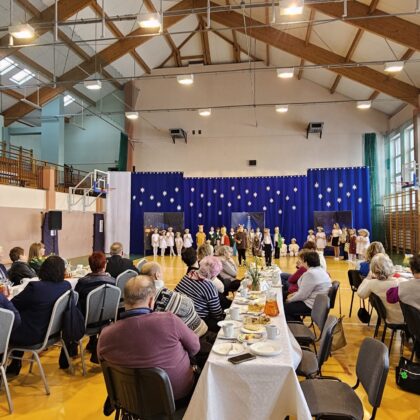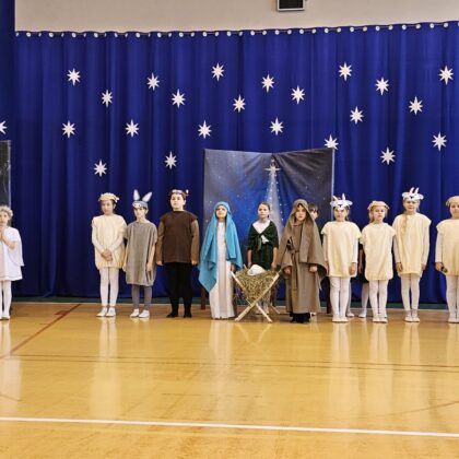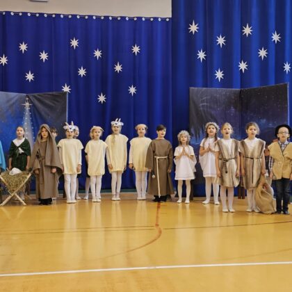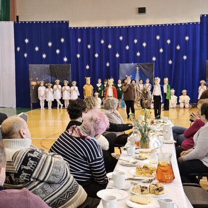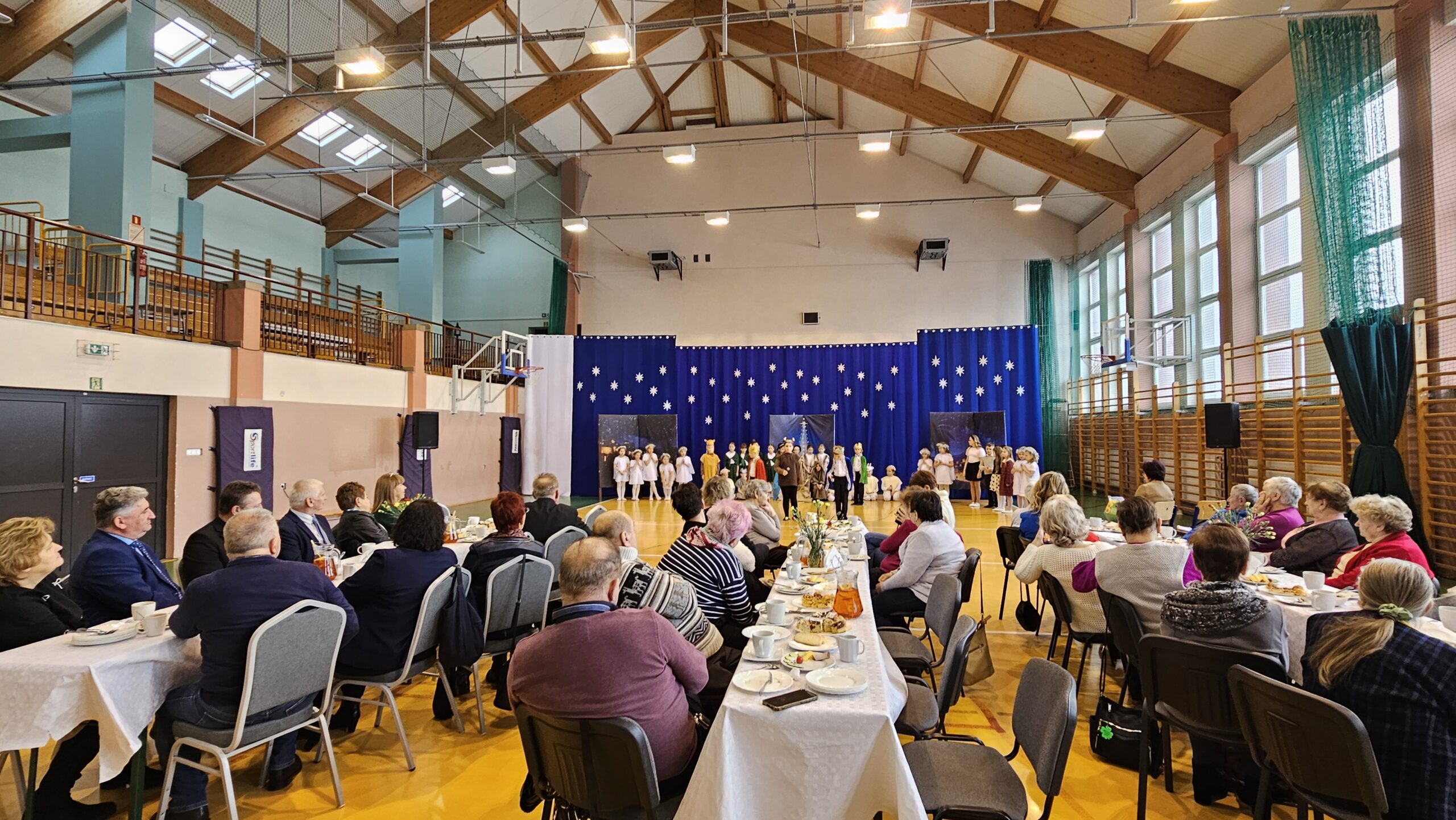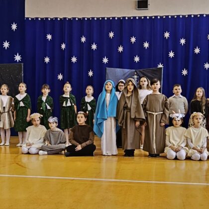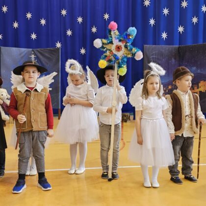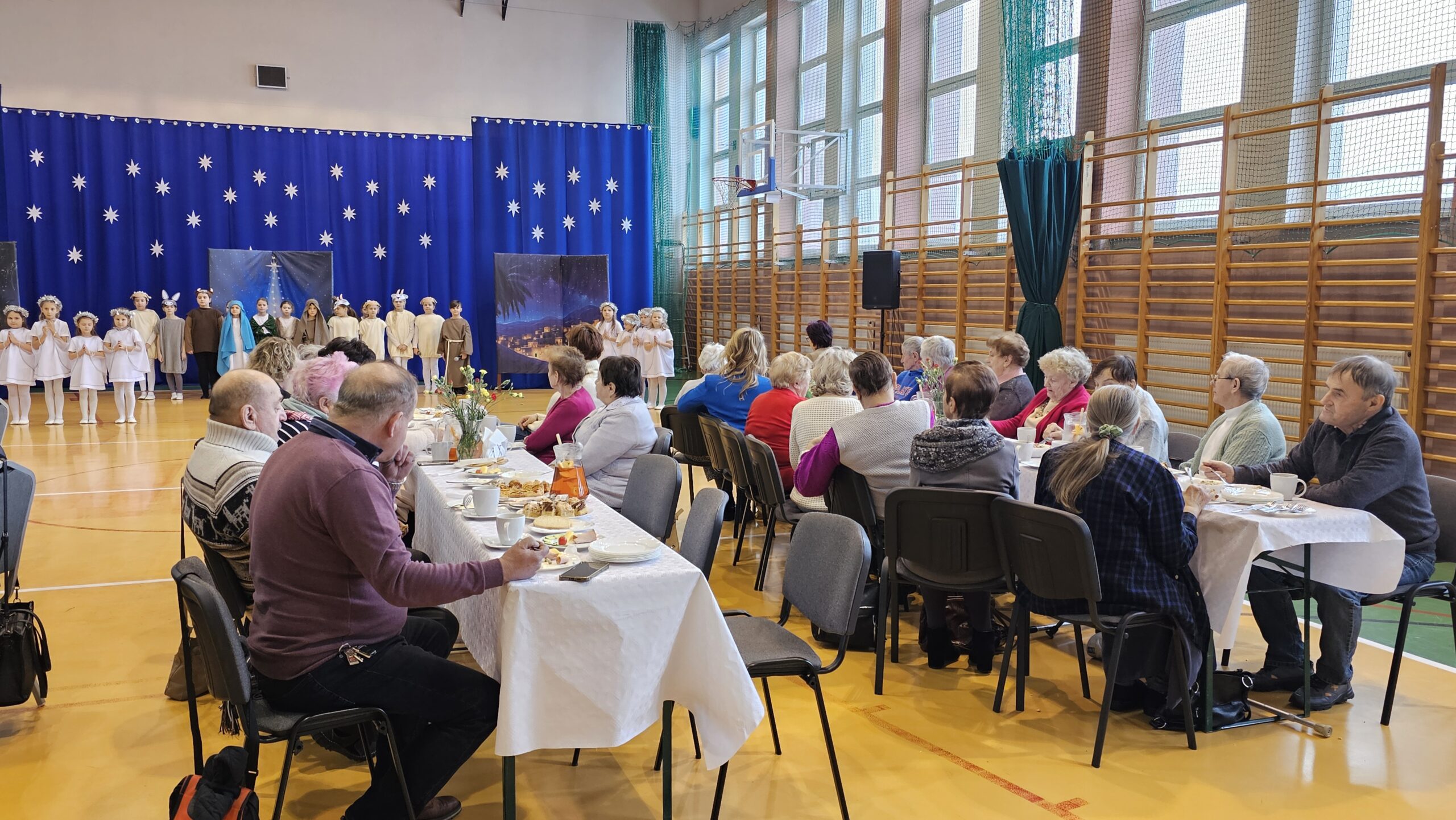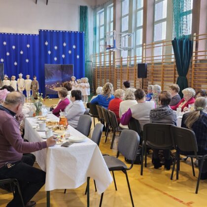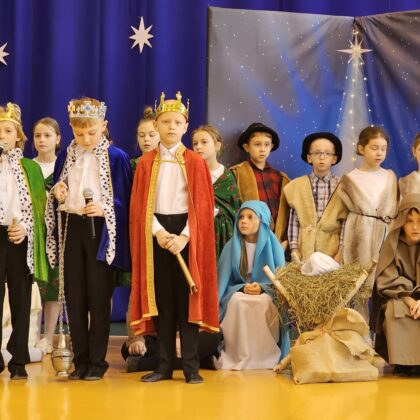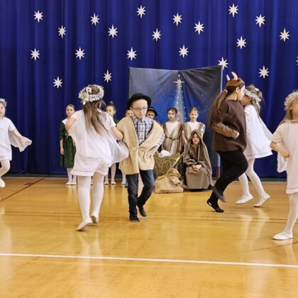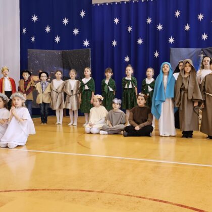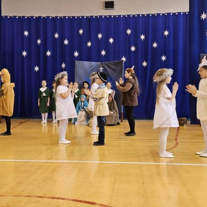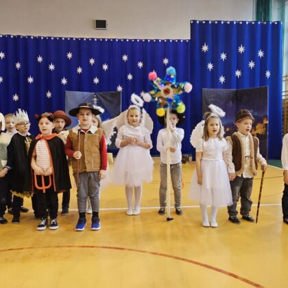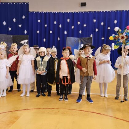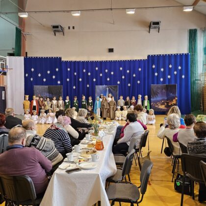 Podczas wydarzenia zespół Szczygielki zaprezentował piękne jasełka, które wzruszyły i zachwyciły zgromadzoną publiczność. Do wspólnego kolędowania dołączyła także grupa przedszkolna Sówki.