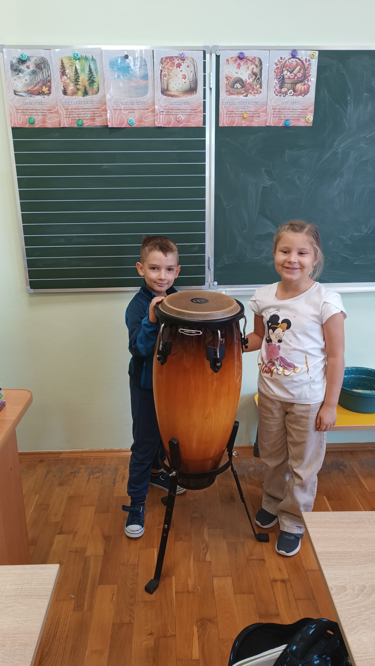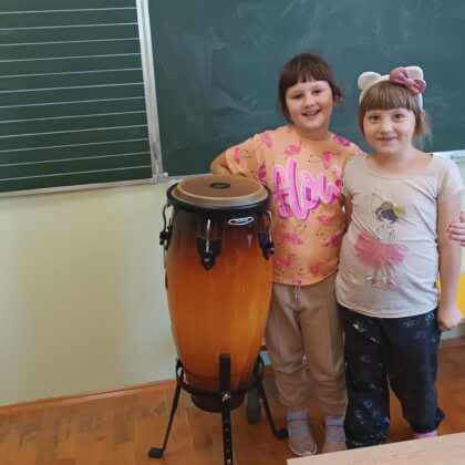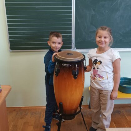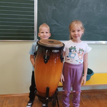 5 września uczniowie klasy 1a na lekcji muzyki wykorzystali sprzęt z Laboratorium przyszłości ( kongo) przy akompaniamencie do piosenki “Z plecakiem do szkoły”